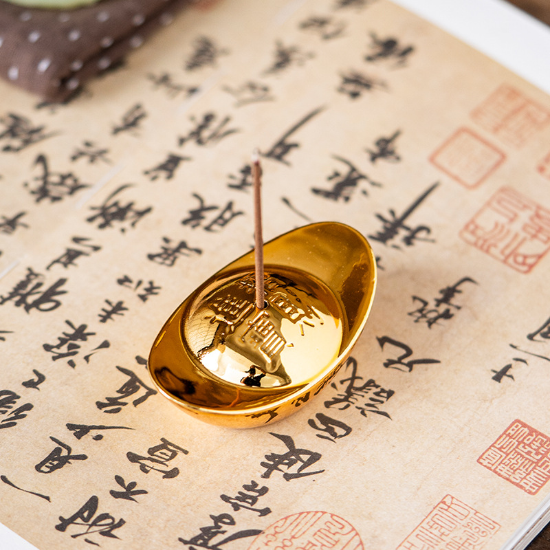 セラミックゴールドインゴットアロマセラピーストーブ装飾品ホーム茶道ライン香炉クリエイティブ富を引き寄せる白檀香炉香立て