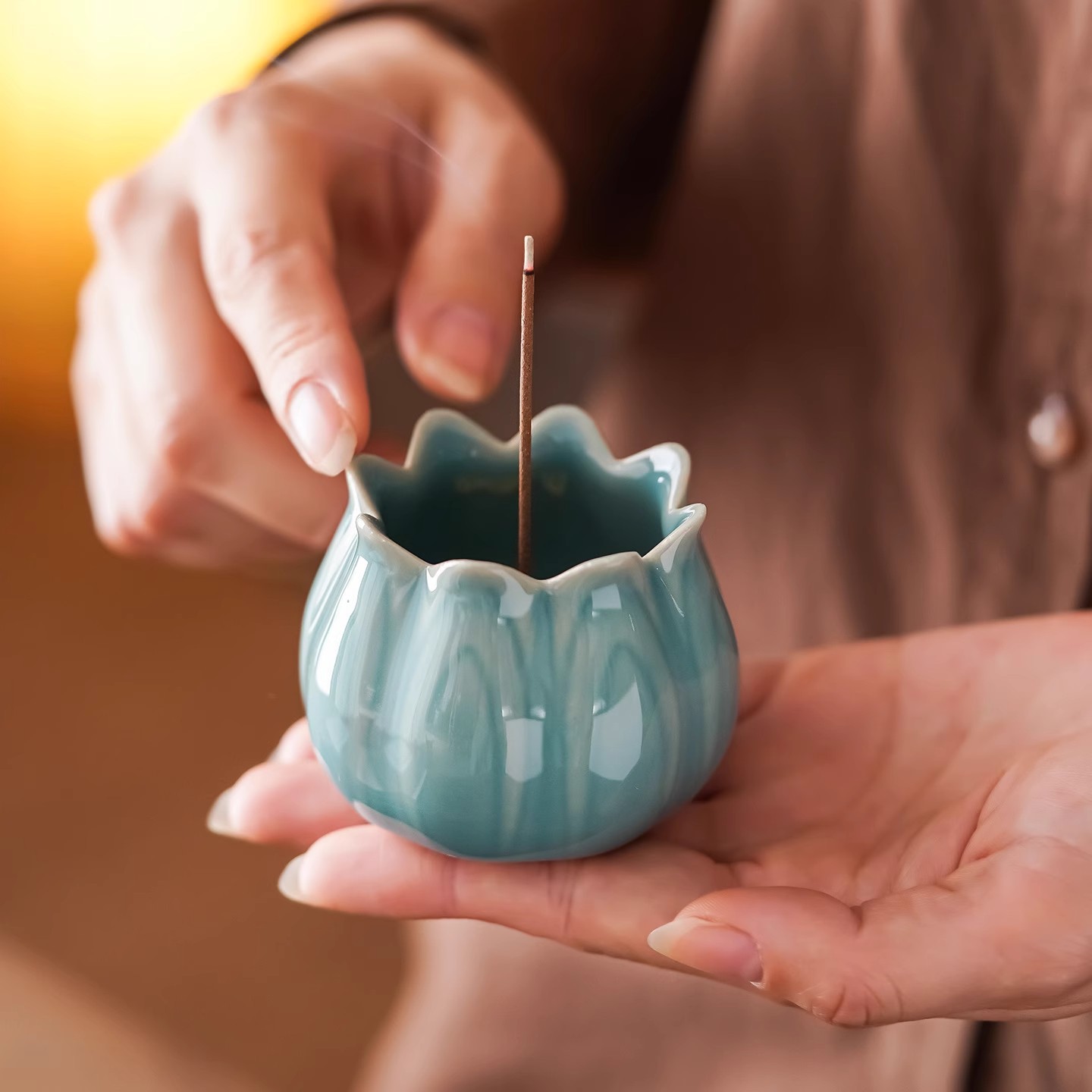 青瓷葵口花瓣小香炉 陶瓷花朵香炉 创意香薰炉线香炉线香插香托
