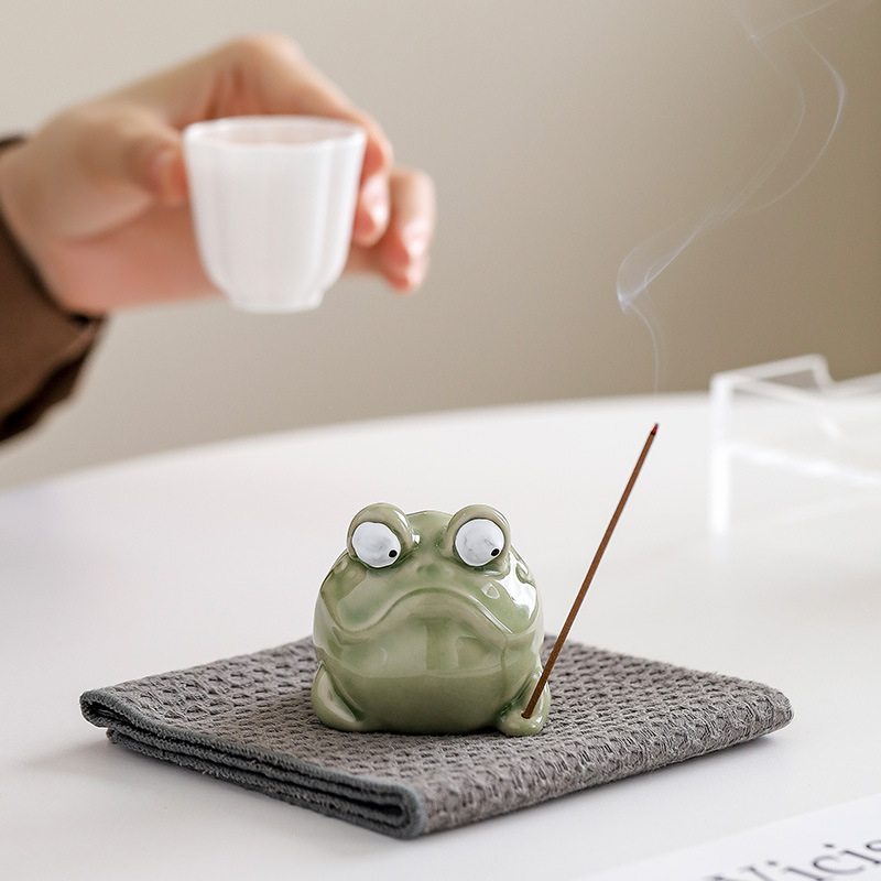創意的なおかしなカエルの線香を挿して香座を挿して茶道の香炉の家庭の室内の香托香器の動物の香薫炉を並べます。