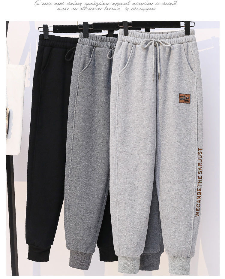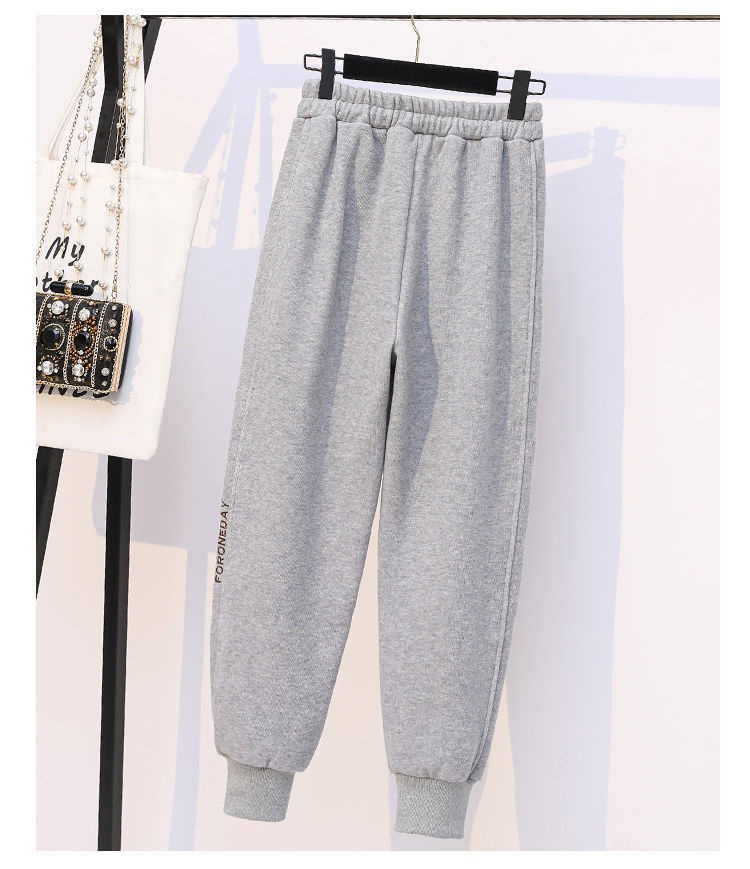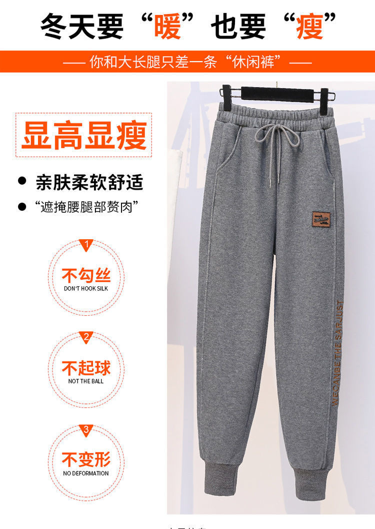 欧货加绒加厚卫裤子女秋冬宽松显瘦束脚哈伦运动裤高腰百搭休闲裤