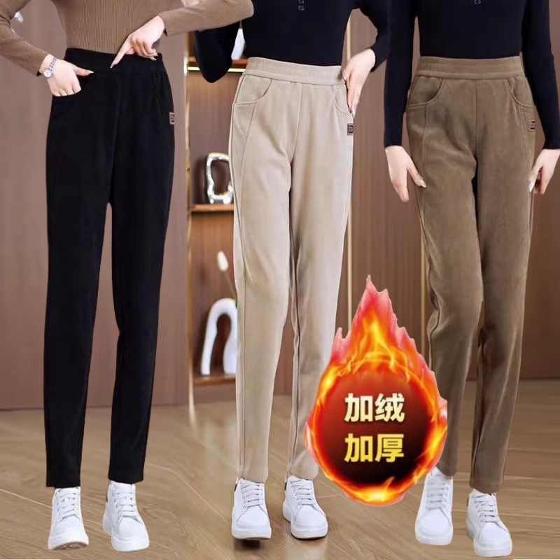 加绒加厚裤子女士冬季新款哈伦裤高腰显瘦保暖宽松小脚时尚休闲裤
