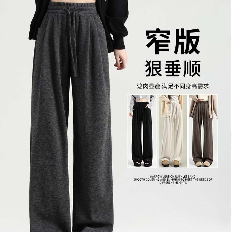 慵懒糯米裤垂感休闲裤2025春秋季新款高腰宽松直筒显瘦裤子
