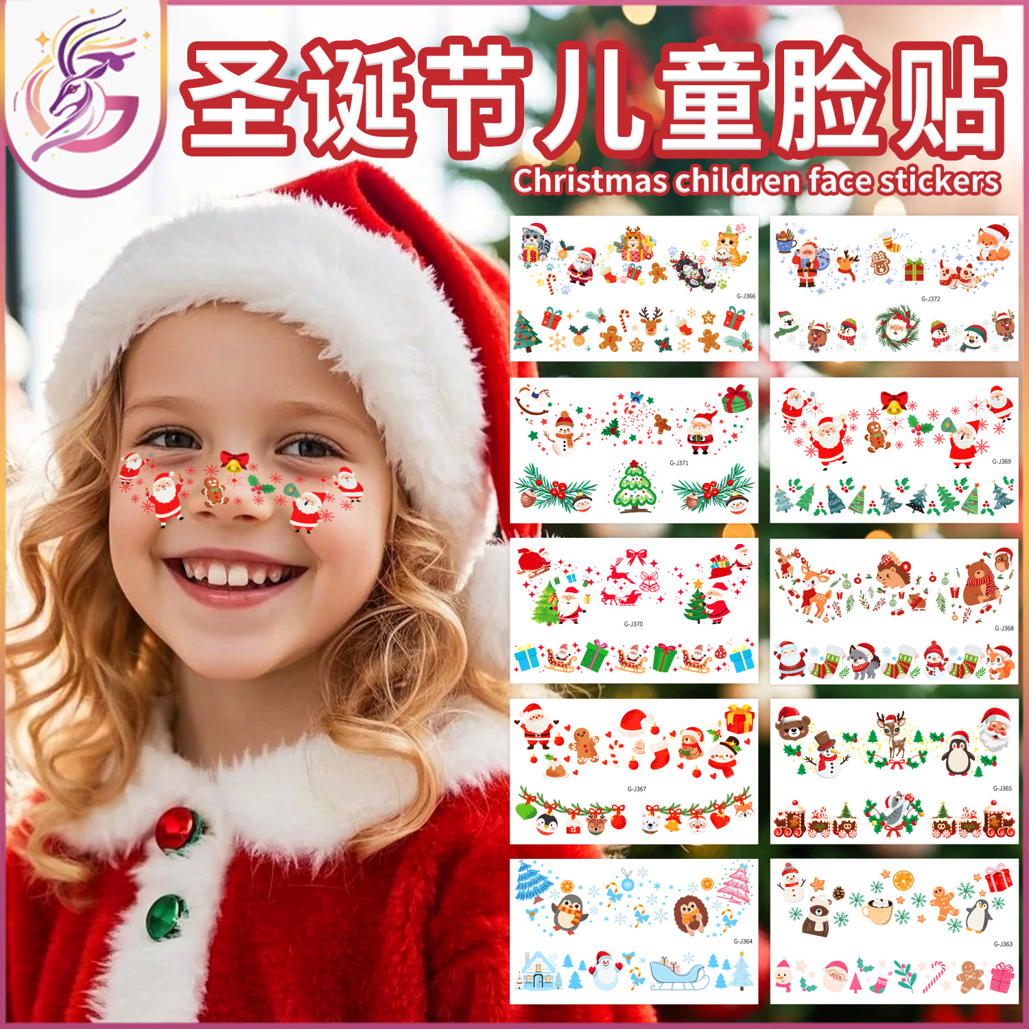 圣诞节儿童脸贴雪花雪人铃铛元素童趣节日派对面部妆容一次性纹身