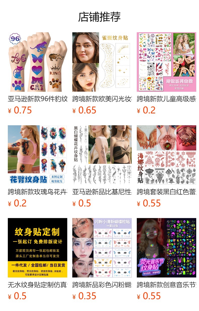 亚马逊新款96件豹纹身贴生日派对脸贴礼品装饰品高级感临时贴纸