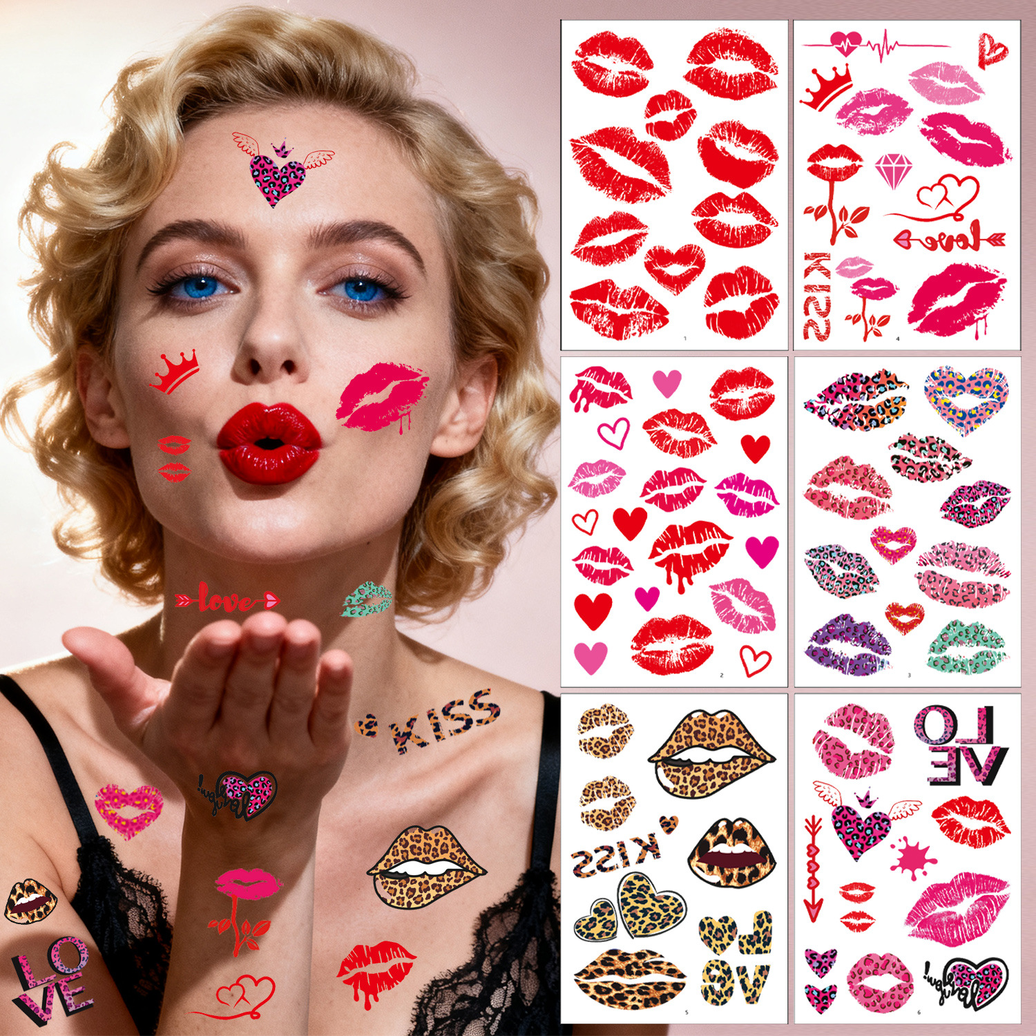 跨境新款情人节嘴唇纹身贴情侣唇印爱心七夕豹纹嘴唇kiss玫瑰贴纸