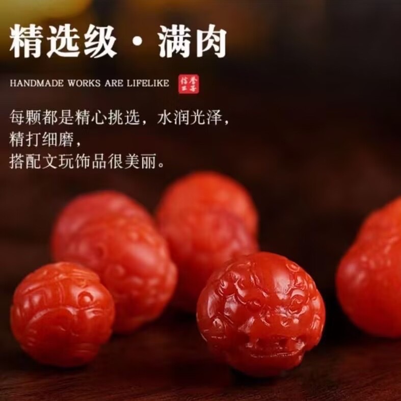 保山南红精工貔貅散珠单珠满色满肉柿子红文玩配件饰原矿南红批发
