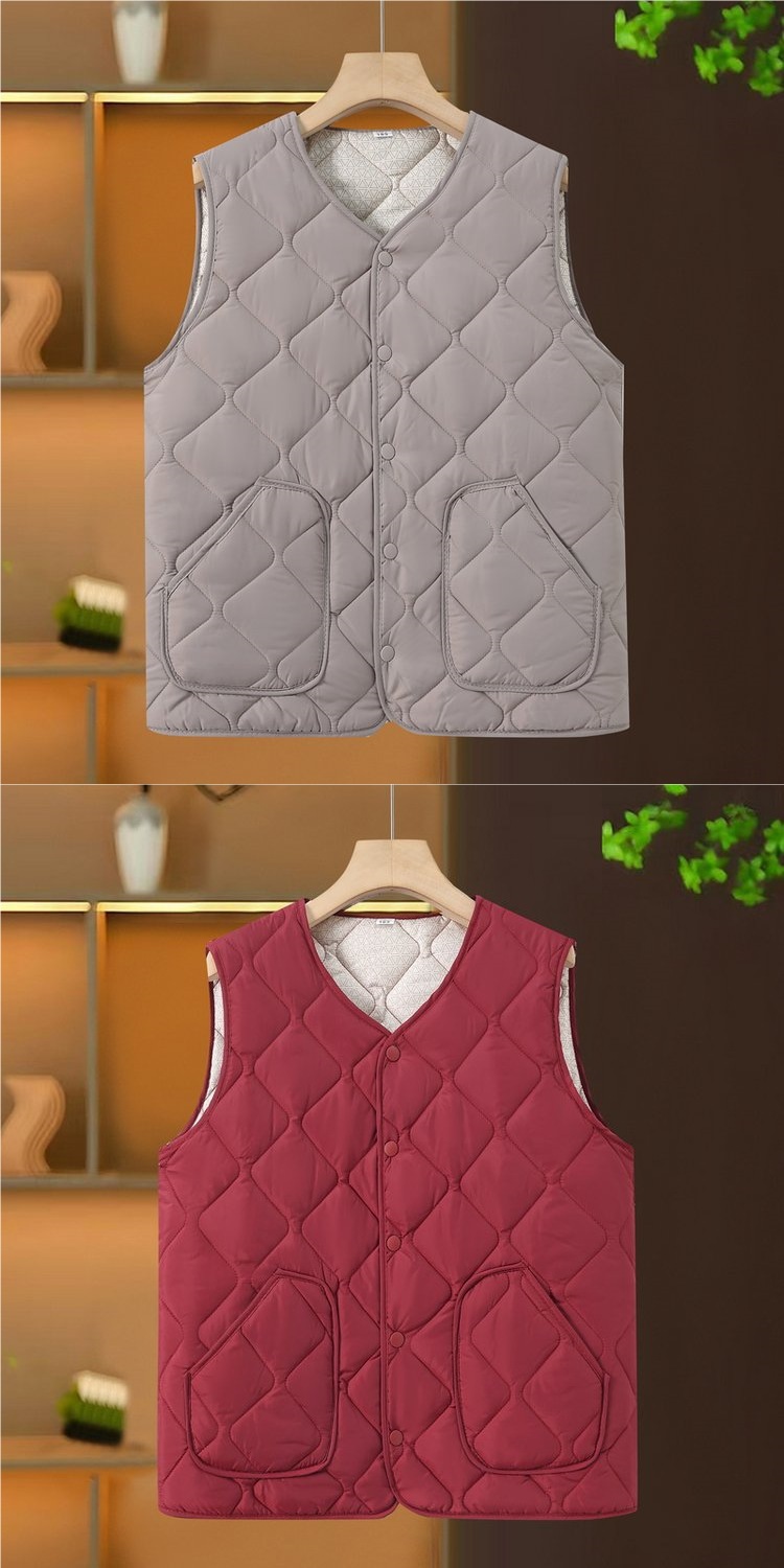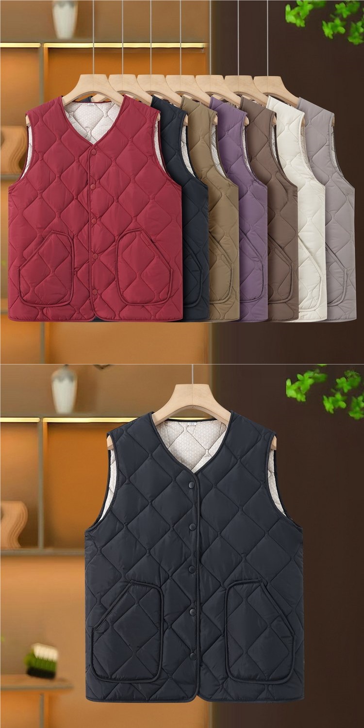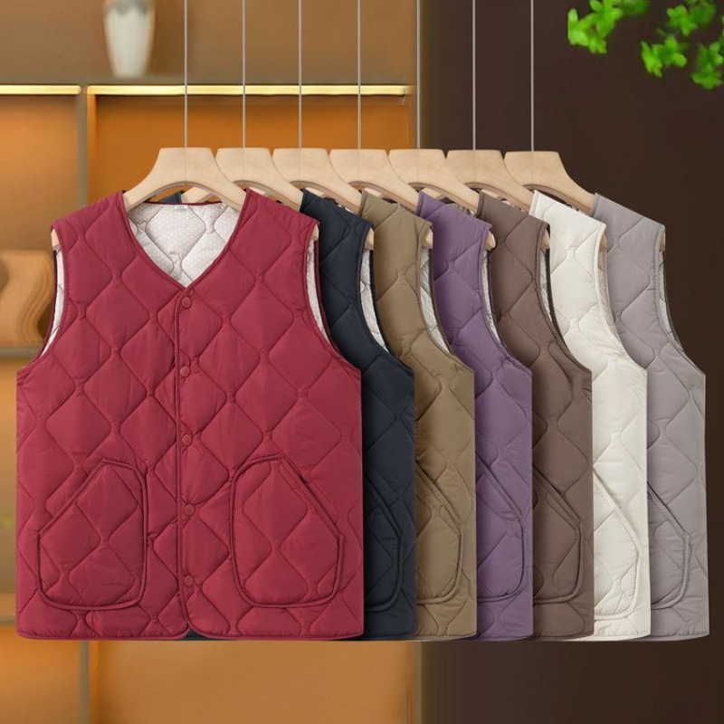 中高年の婦人服のおばあさんの秋冬服のベストは綿のベストを挟みます。