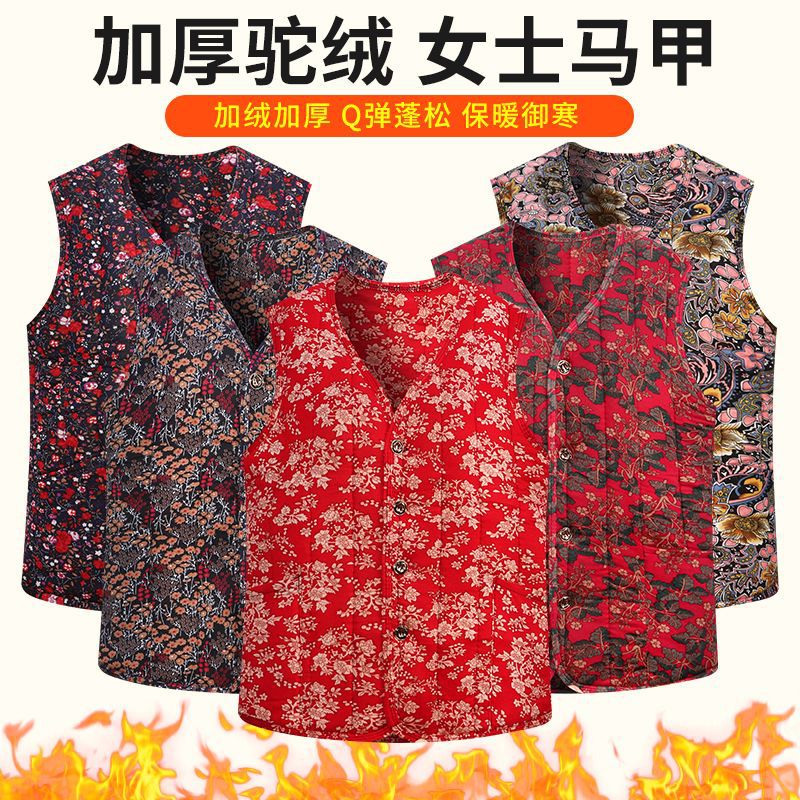 新女马甲新款老年人马甲老太太棉马甲驼绒保暖时尚新中式