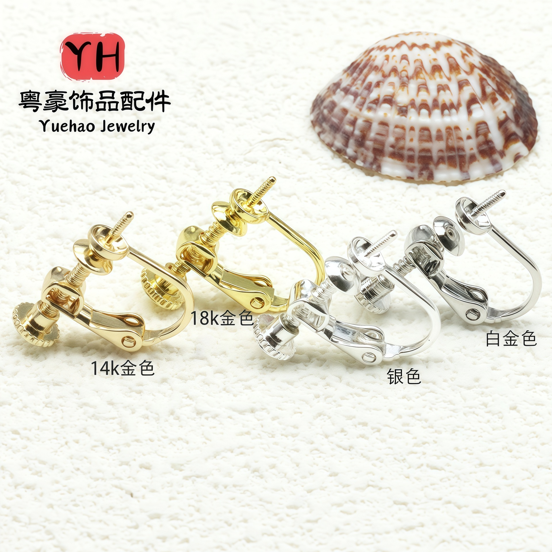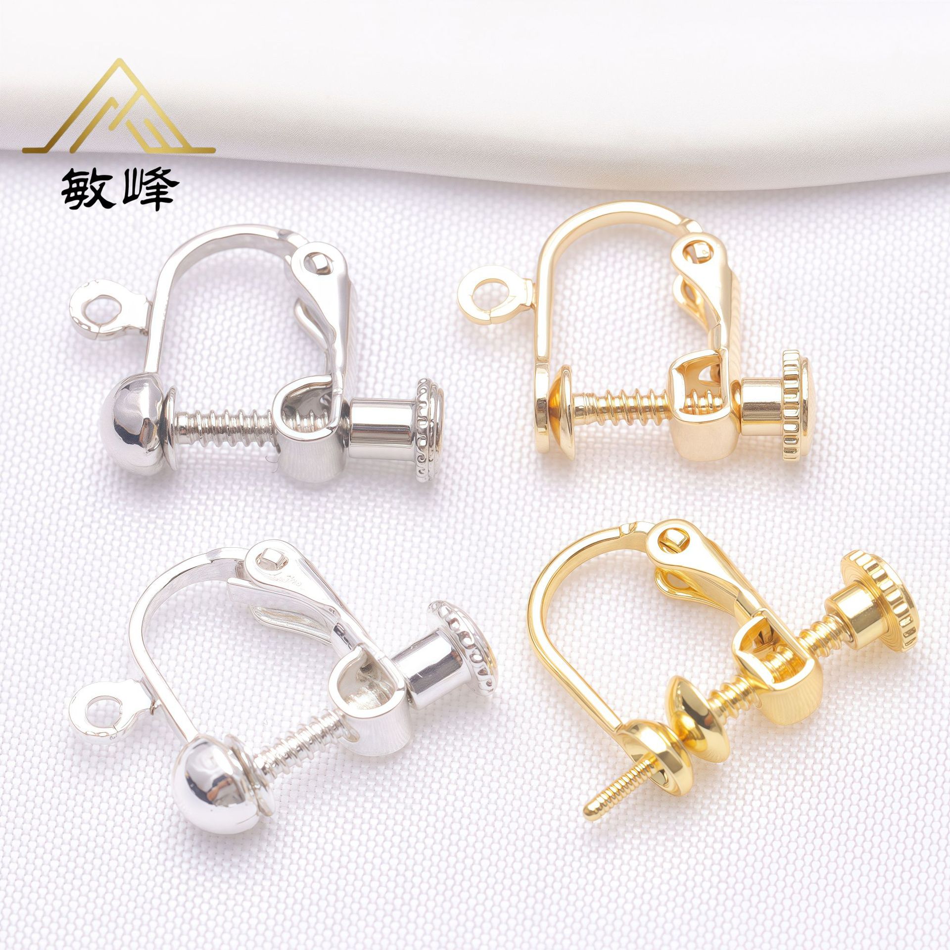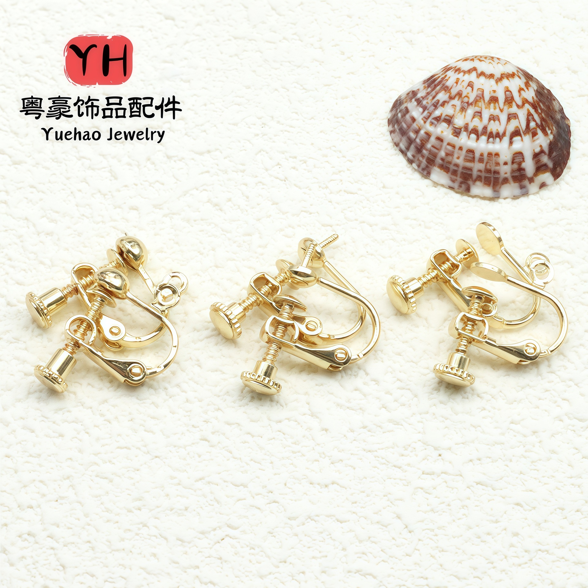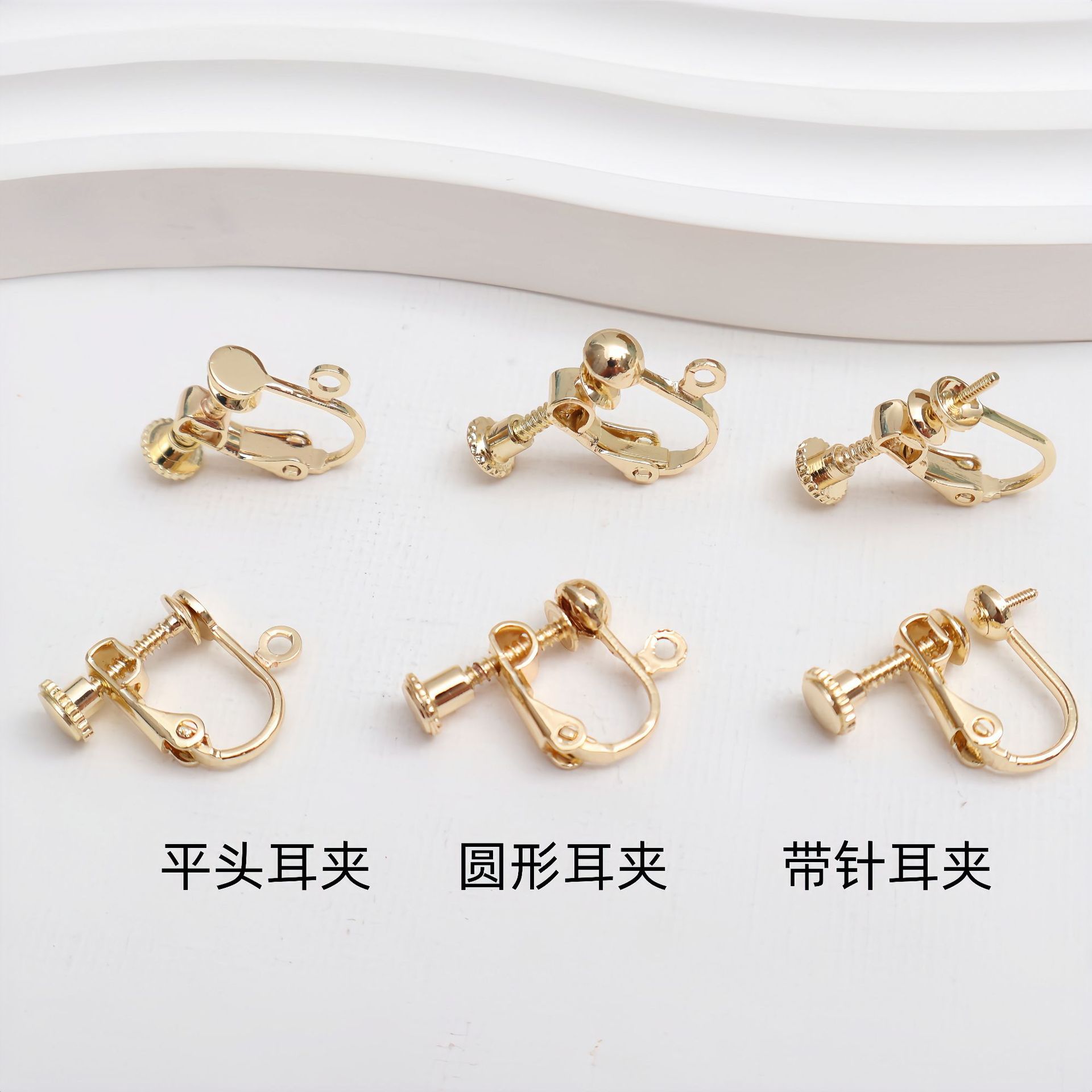 保色14k包金螺丝耳夹 无耳洞可调节耳夹扣材料diy手工耳夹转换器