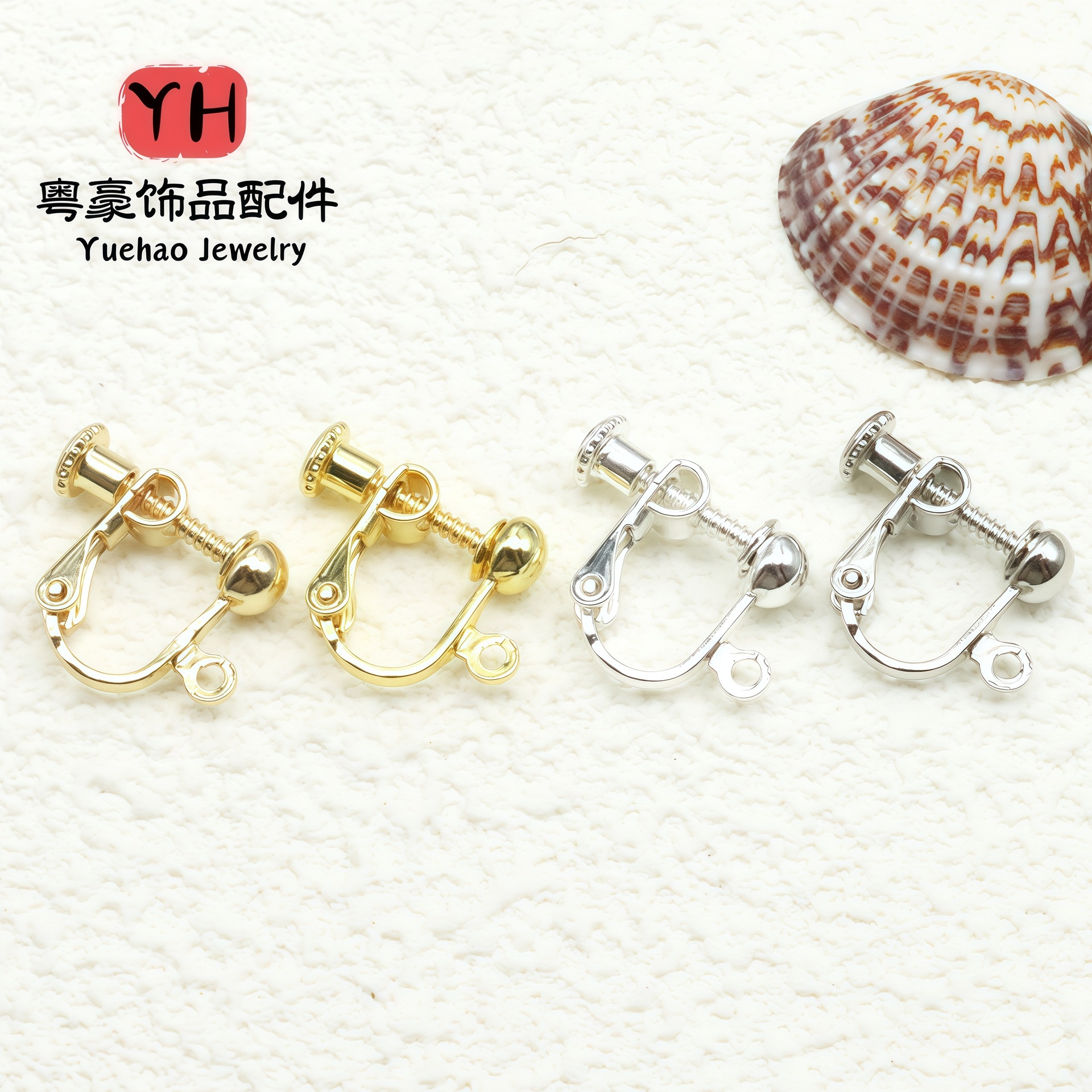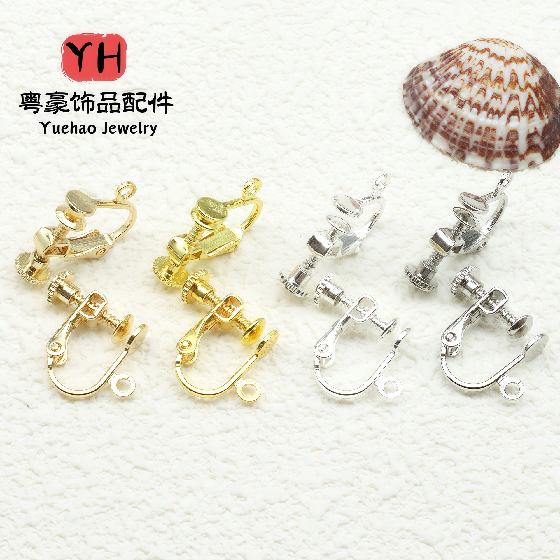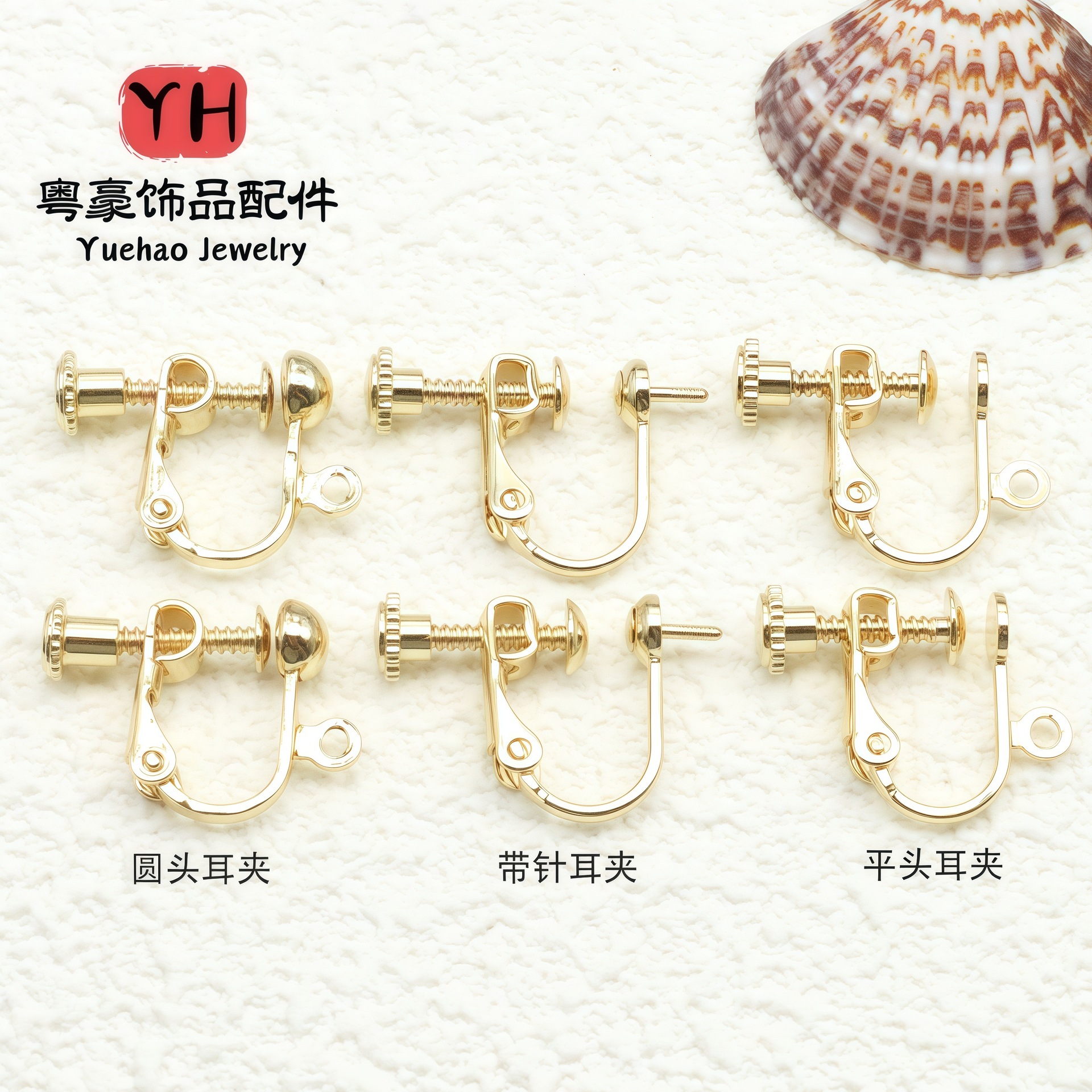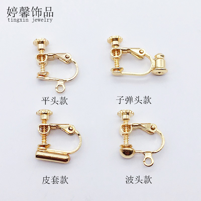 保色14k包金螺丝耳夹 无耳洞可调节耳夹扣材料diy手工耳夹转换器