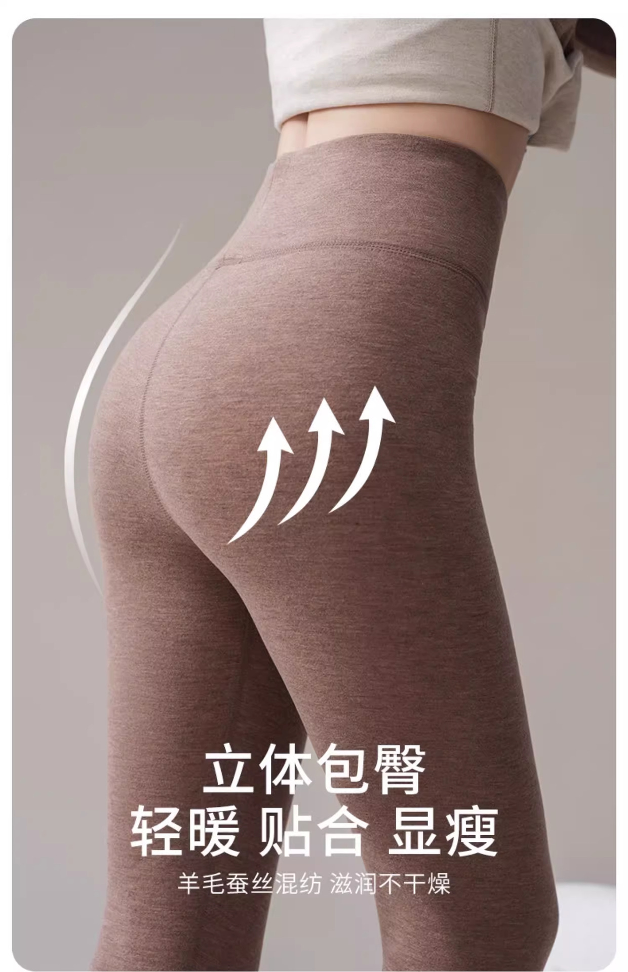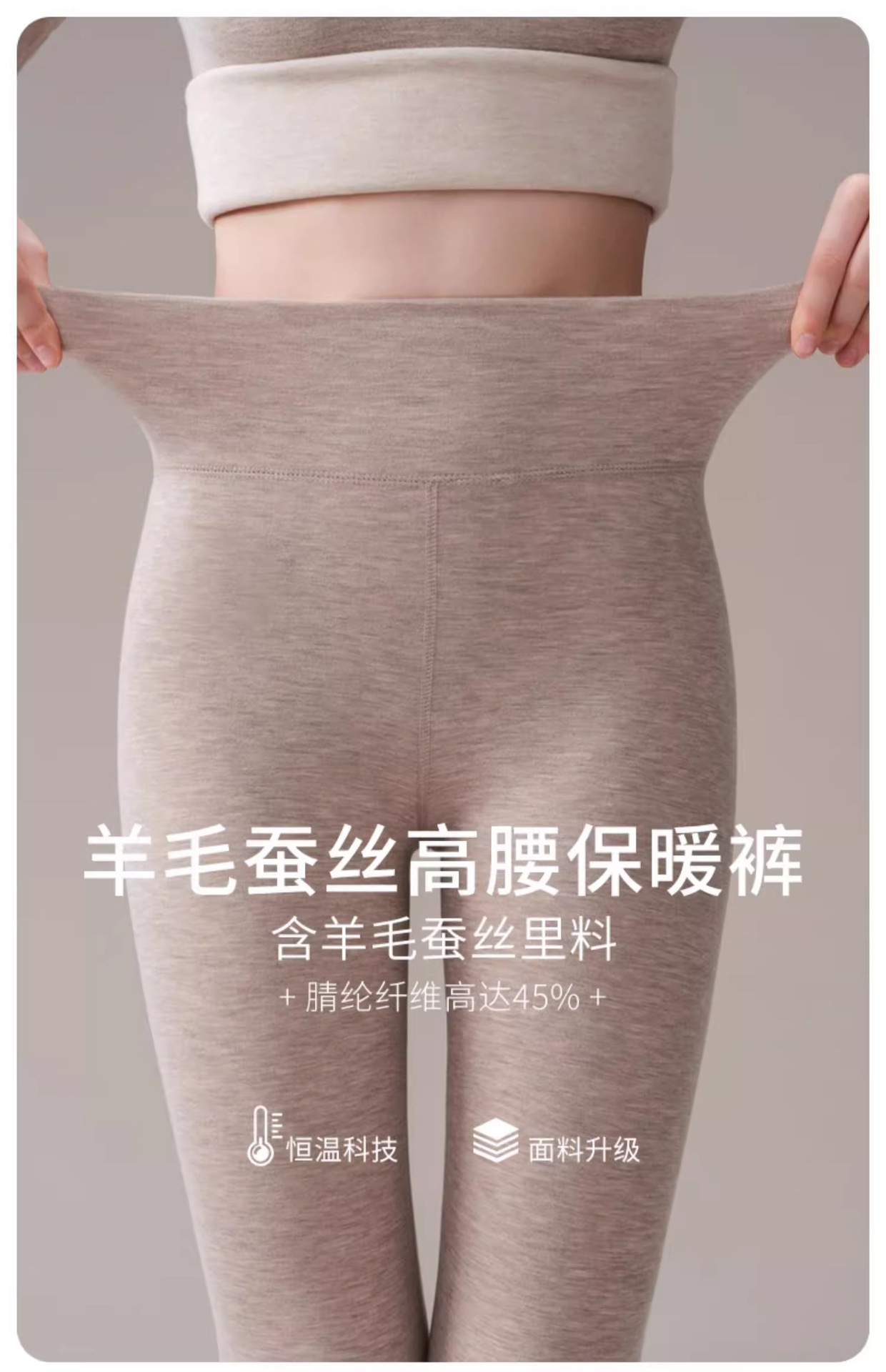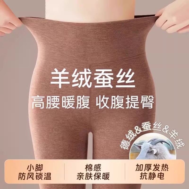 羊毛蚕丝德绒秋裤高腰无痕紧身高弹力内穿保暖加绒打底裤女秋冬季