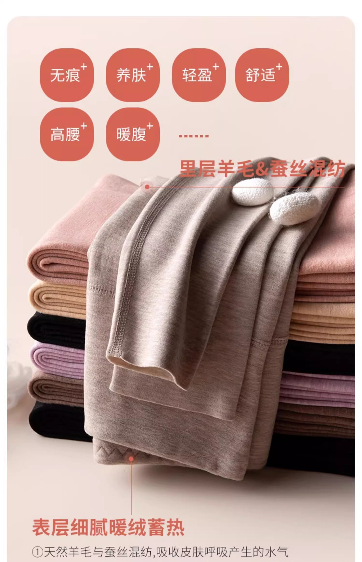 源头德绒保暖秋裤女士秋冬季内穿加绒加厚紧身无痕防寒羊绒蚕代发