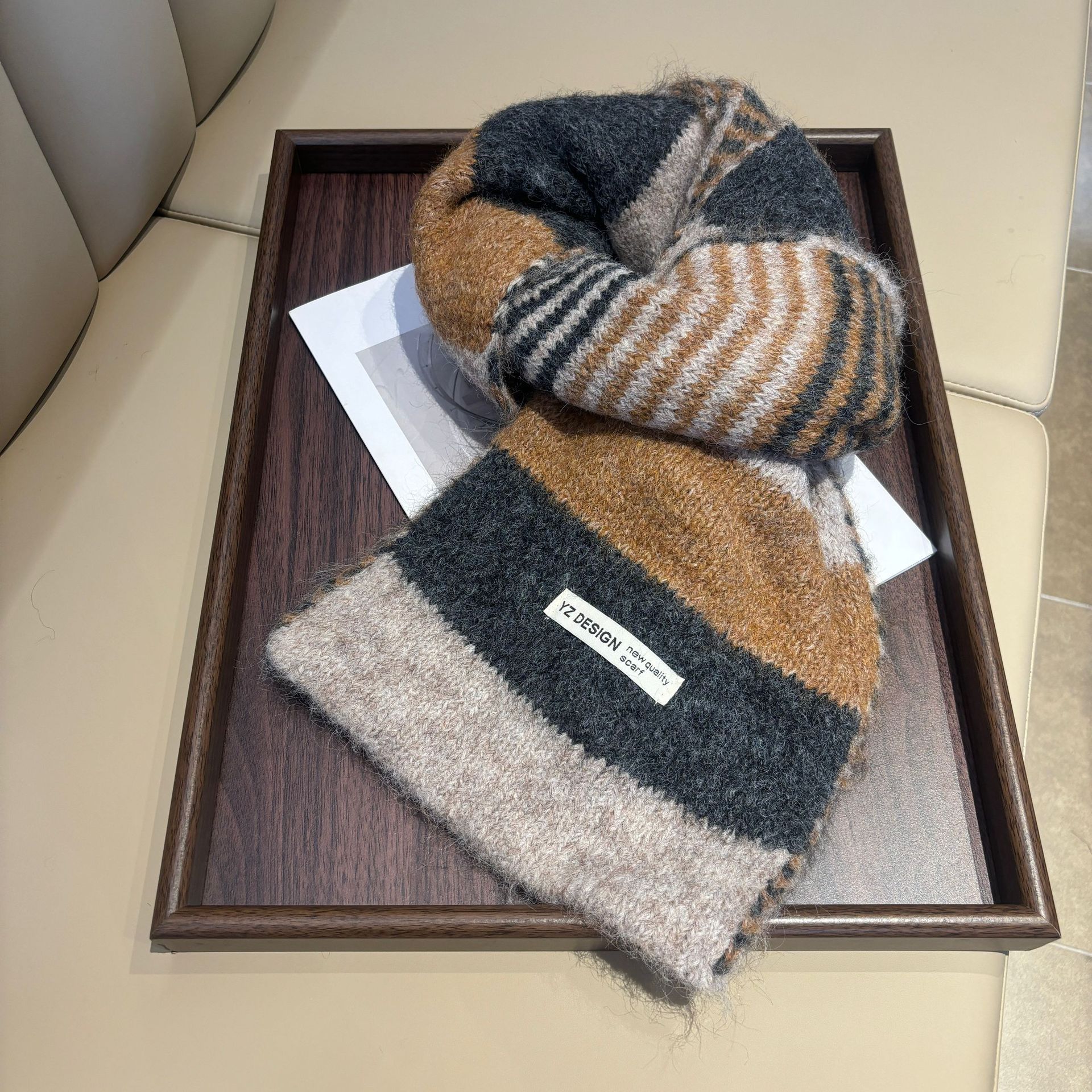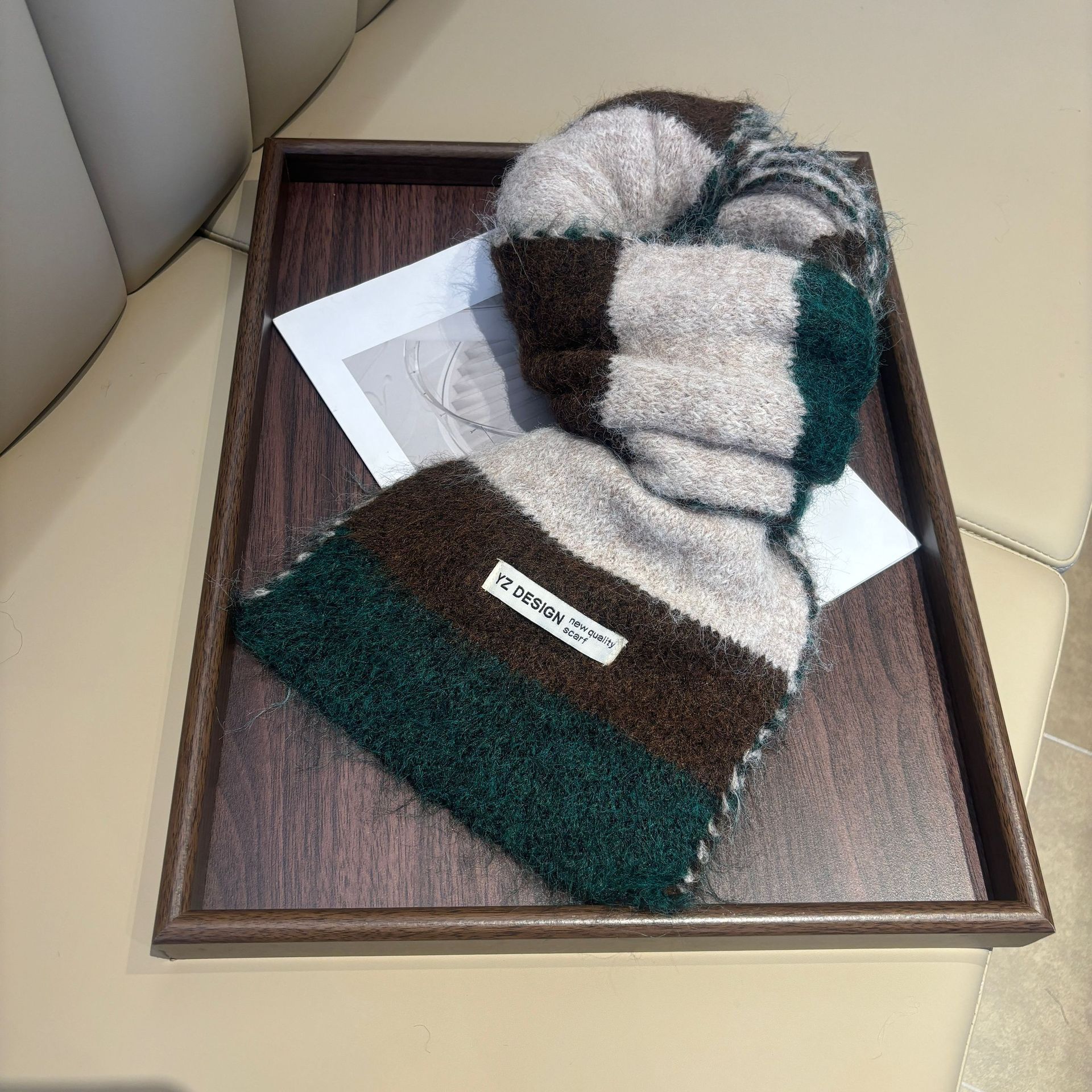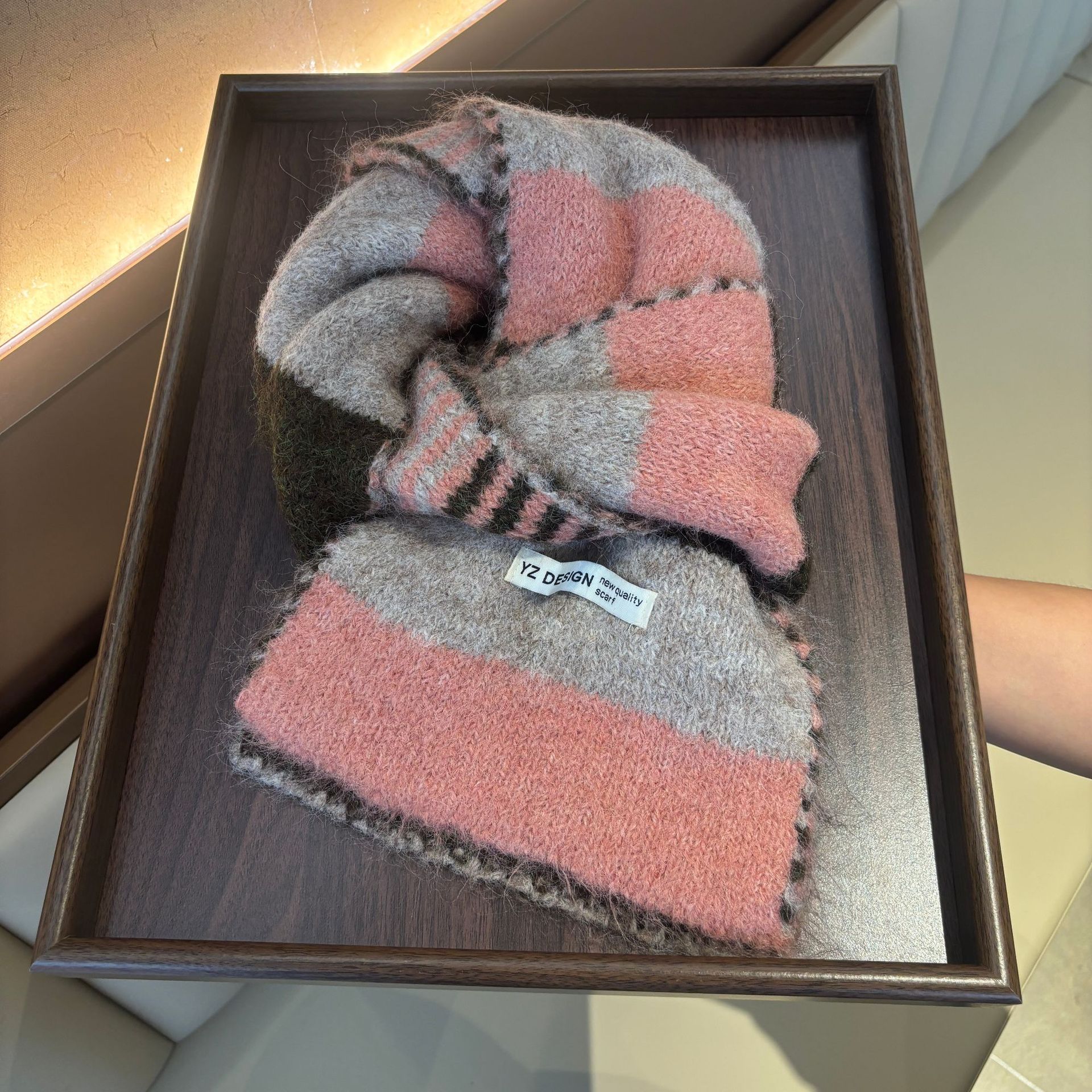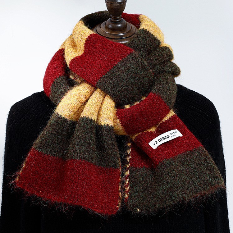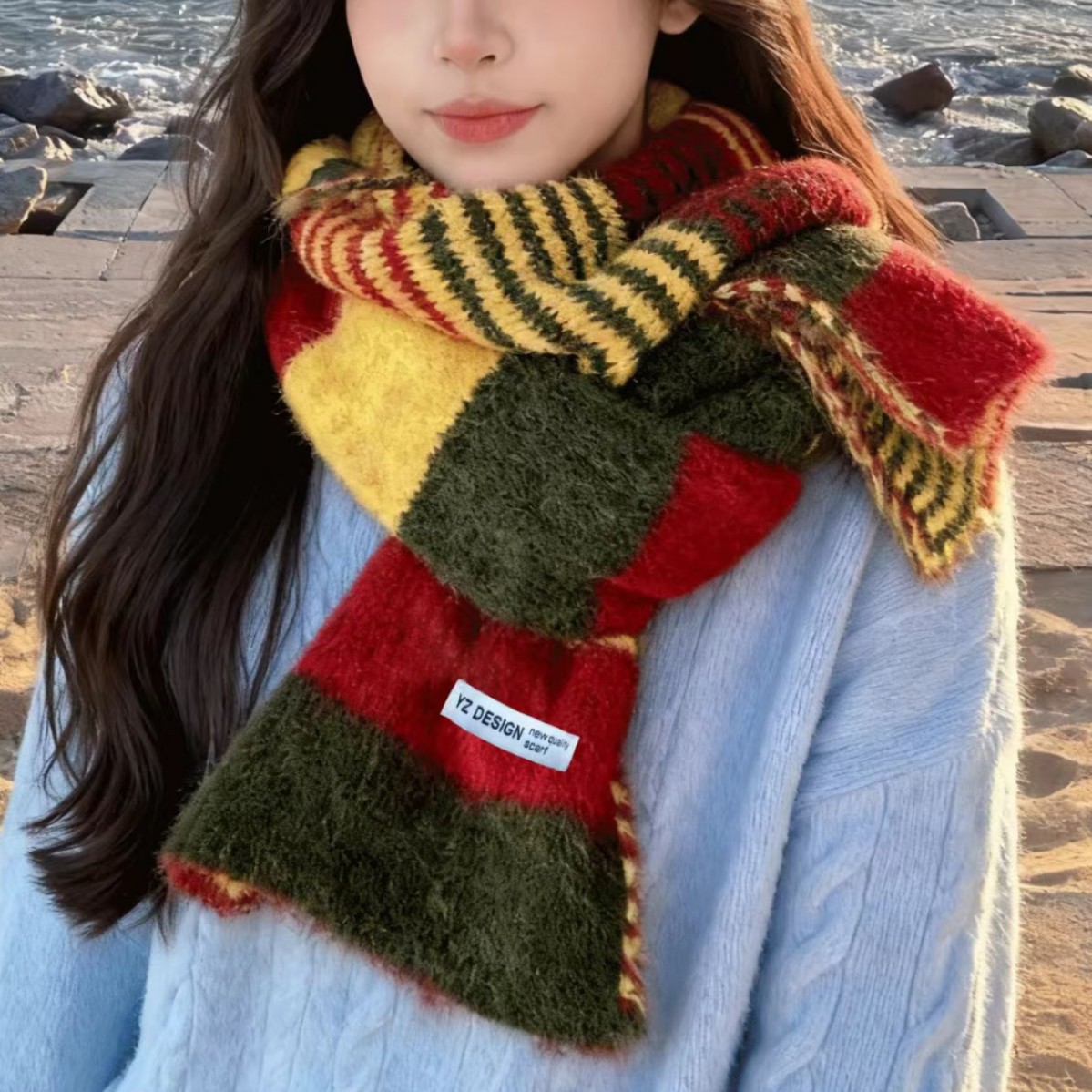 2025新款拼色撞色针织条纹毛线围巾女秋冬季韩版百搭加厚保暖围脖