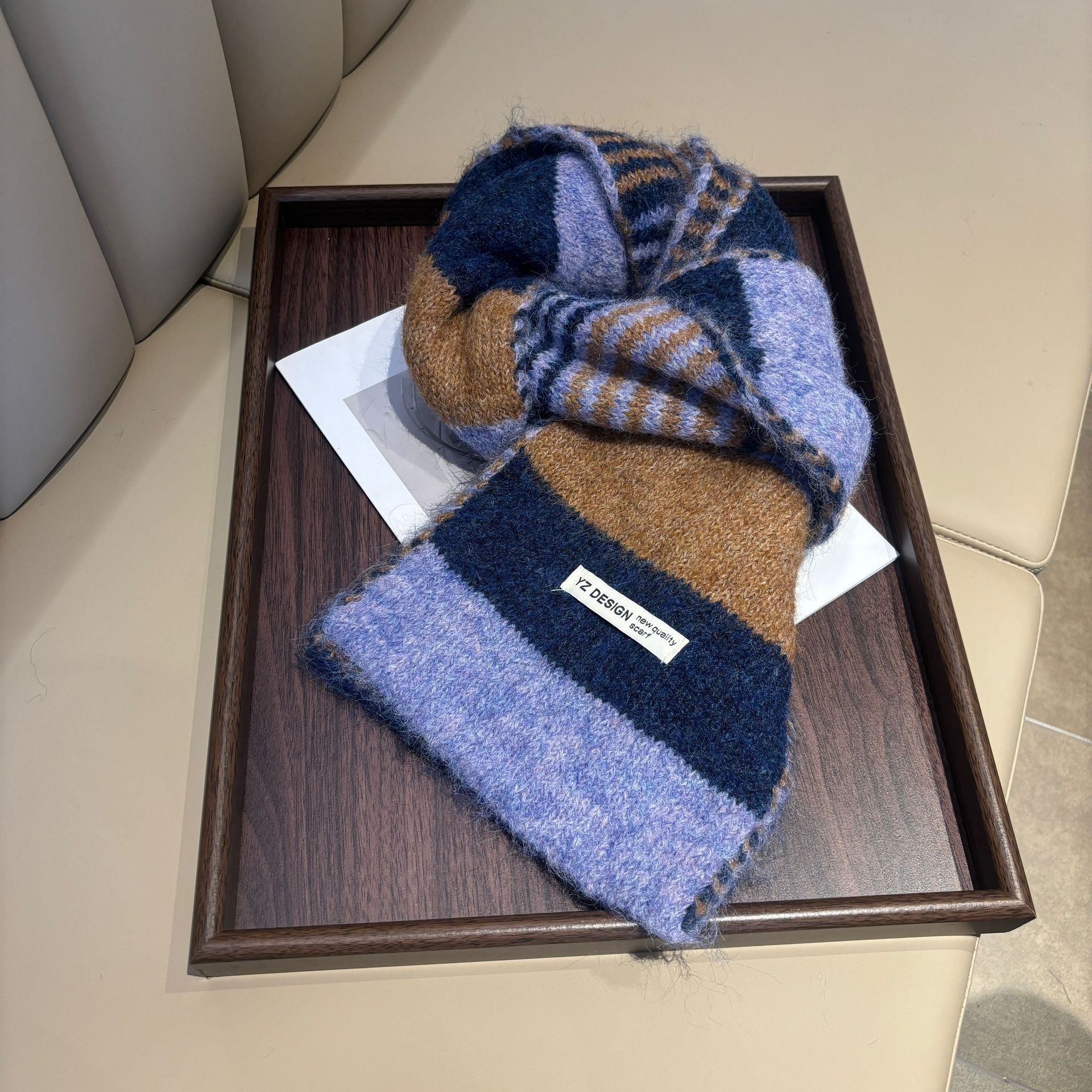 韩版围巾彩色条纹混纺小众保暖加厚围脖披肩2025秋冬季新款针织