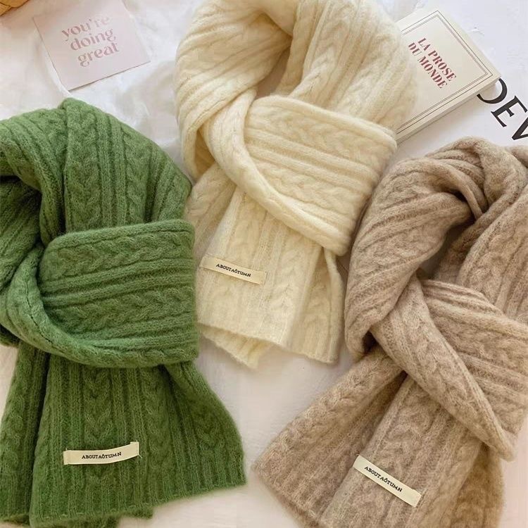 Ins原宿風太毛糸ニットマフラー女性冬韓版百合保温日系学生純色マフラー潮