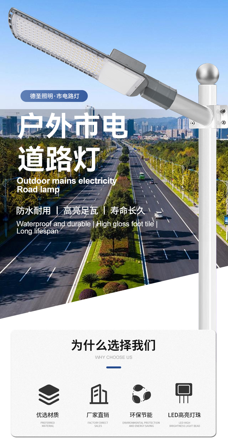 路灯市电款跨境LED路灯Ip65防水农村道路照明灯市政工程路灯