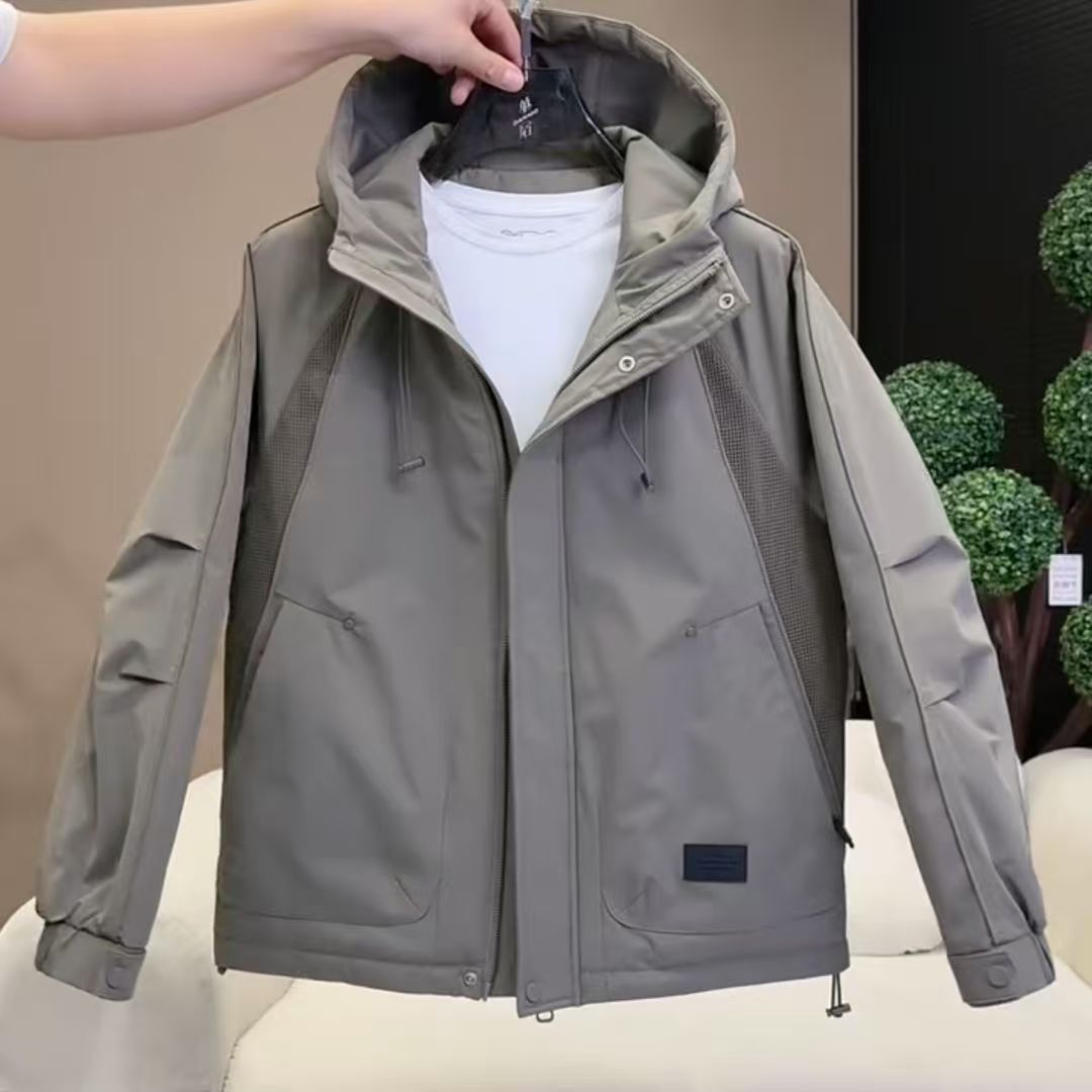 新款冲锋衣男士二棉外套运动休闲防风连帽夹克休闲工装加厚棉衣冬