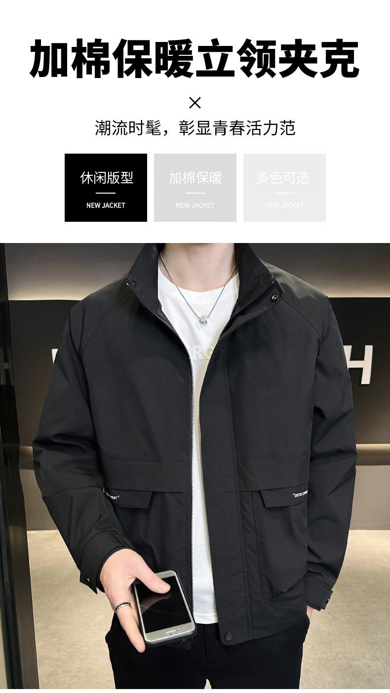秋冬季大码立领工装夹克百搭外套男装高品质痞帅加棉加厚棉衣棉服