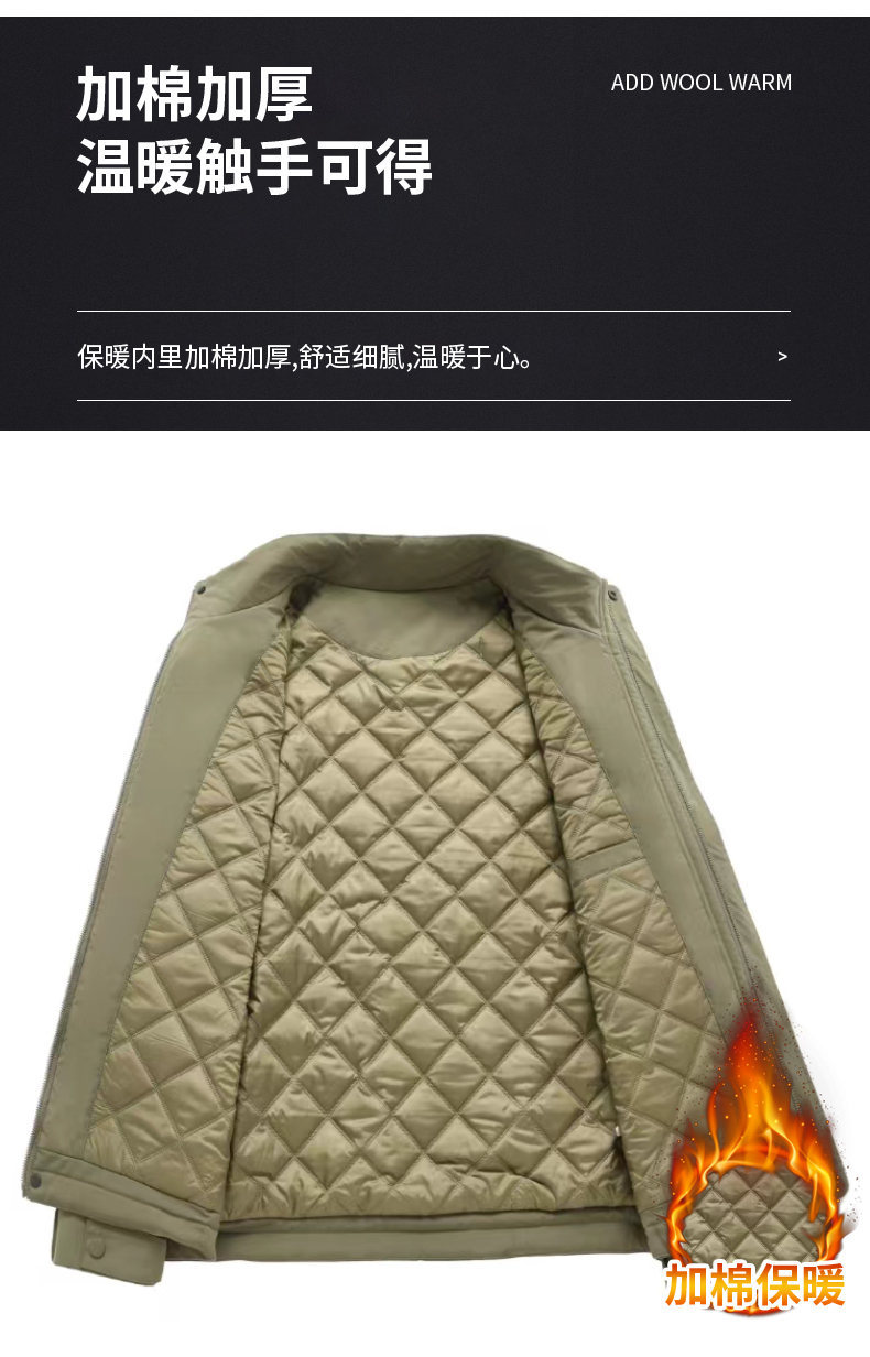 2025秋冬季休闲男外套加棉加厚立领保暖棉袄棉衣棉服军规级防寒衣
