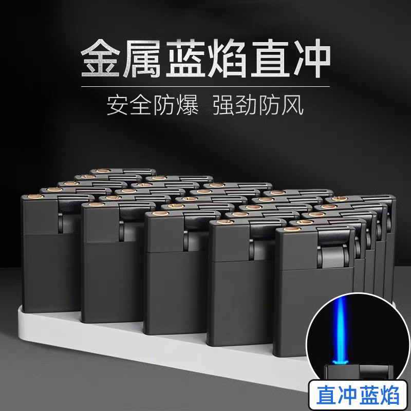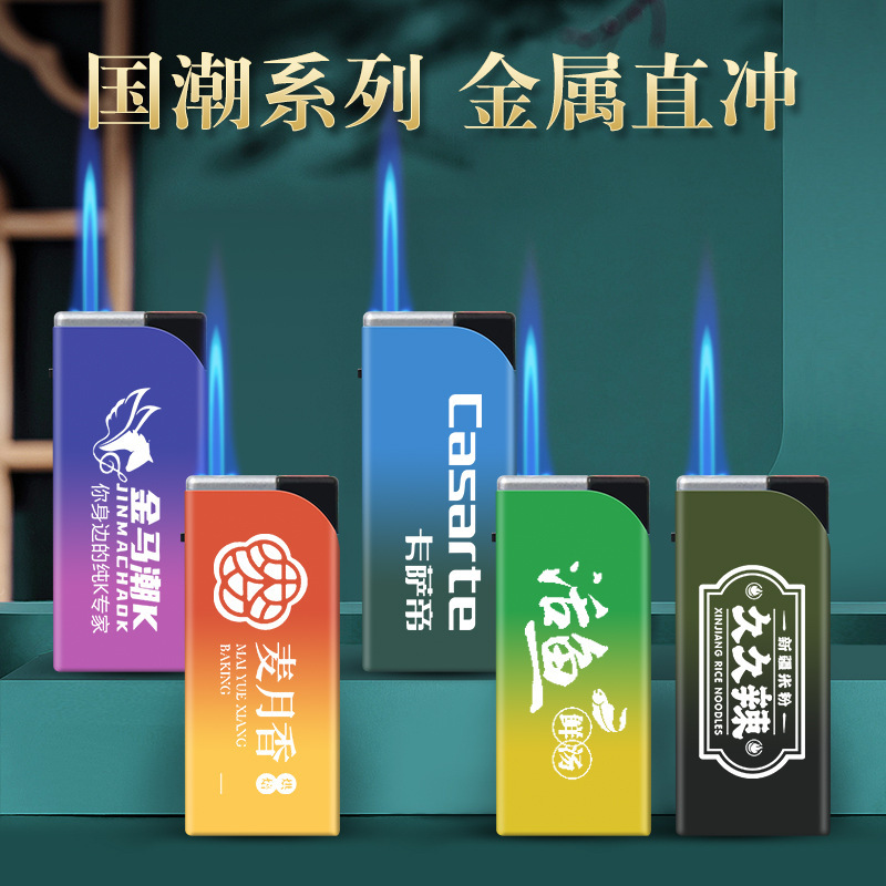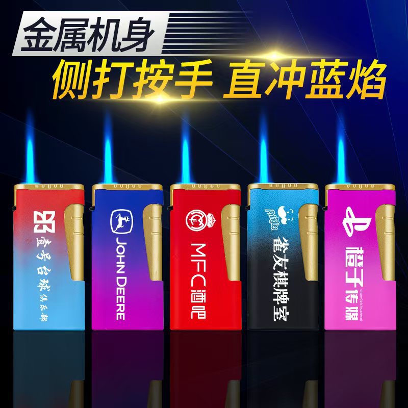 2026年高見え度で人気のネットセレブ愛用メタル防爆ブルーフレーム直噴ガスライター、広告刻印、卸売メタル