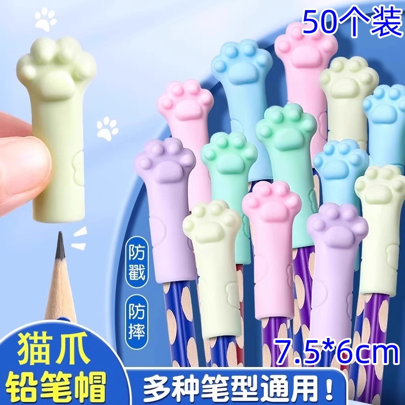 50个装猫爪铅笔帽学生硅胶铅笔套头笔尖保护套
