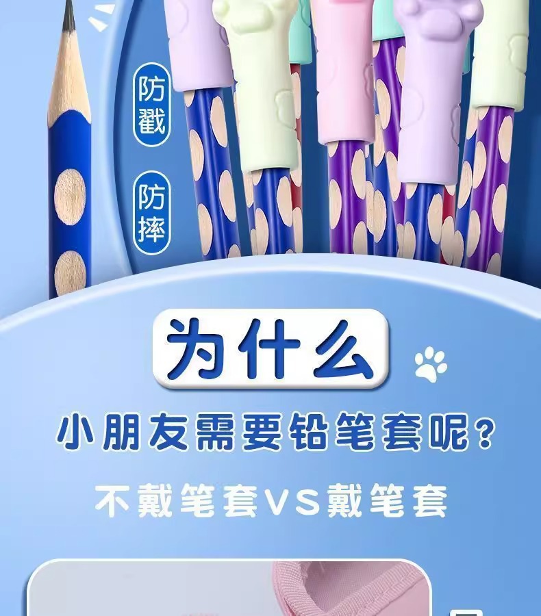 猫爪铅笔帽高颜值学生软胶硅胶铅笔套头笔尖保护套儿童笔帽铅笔盖
