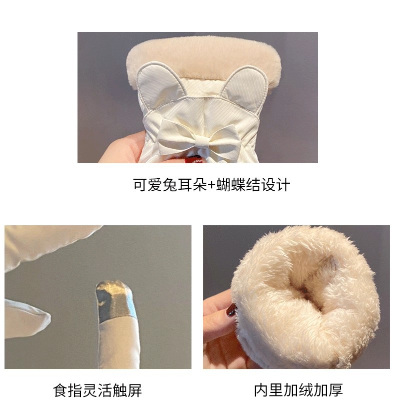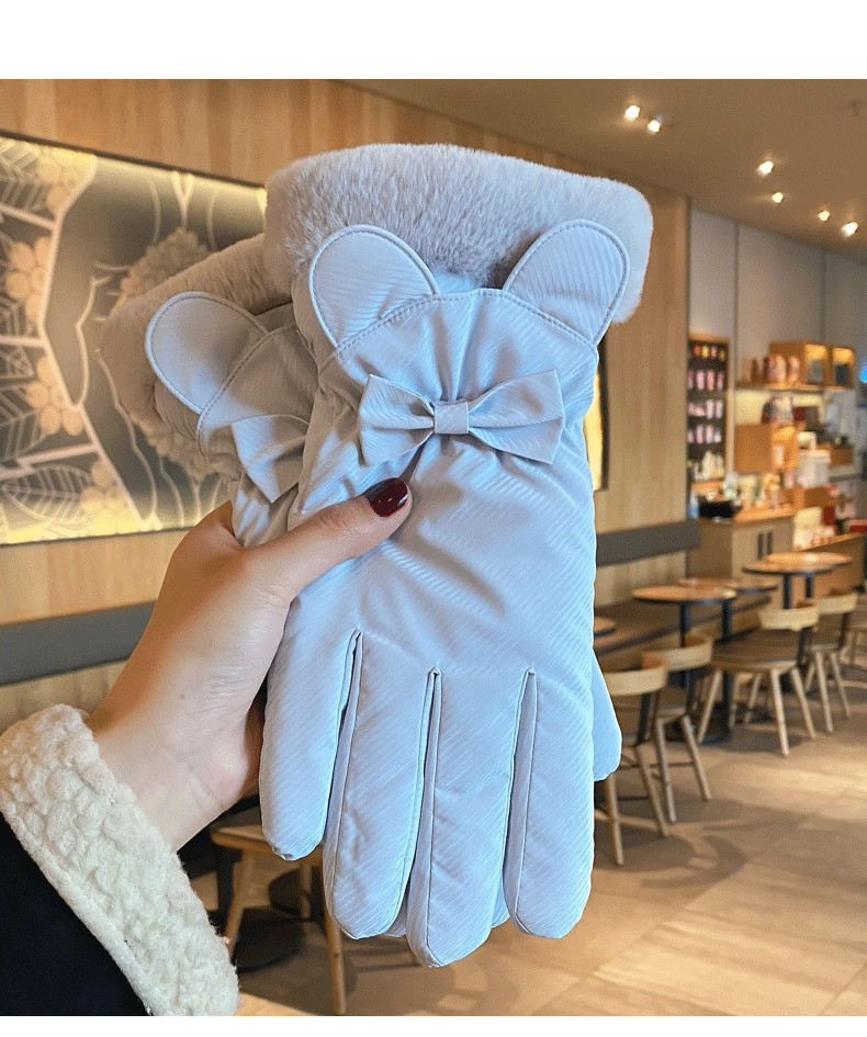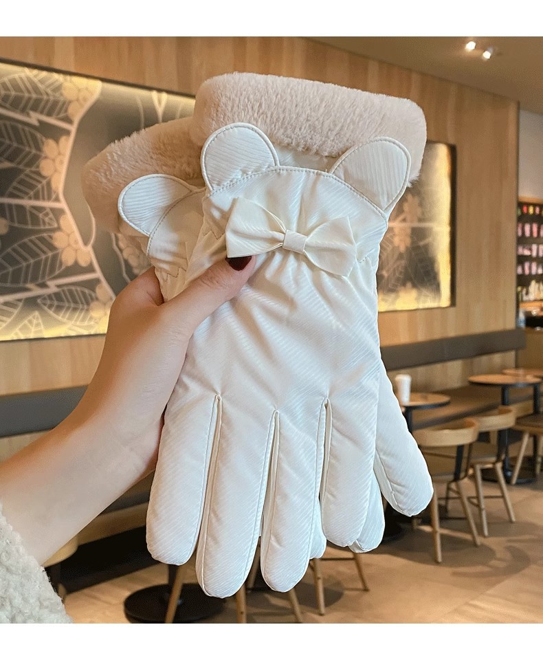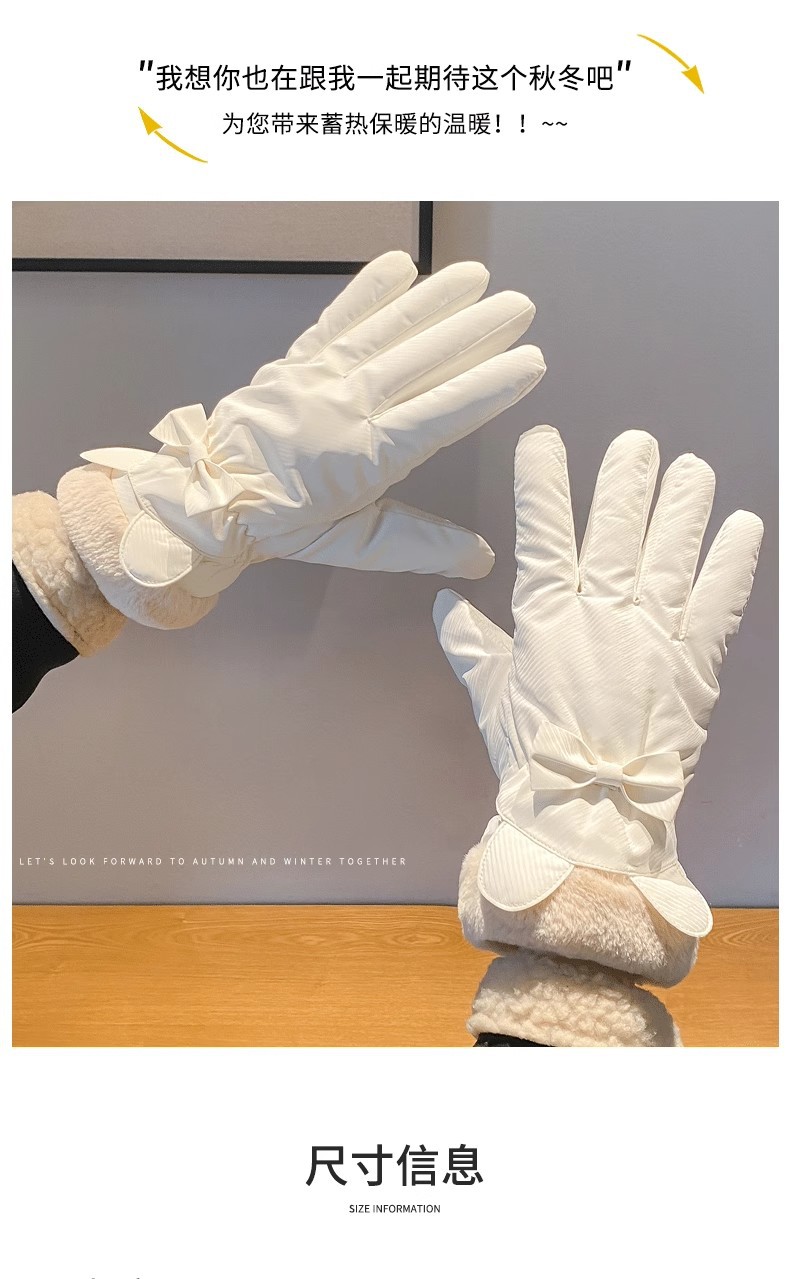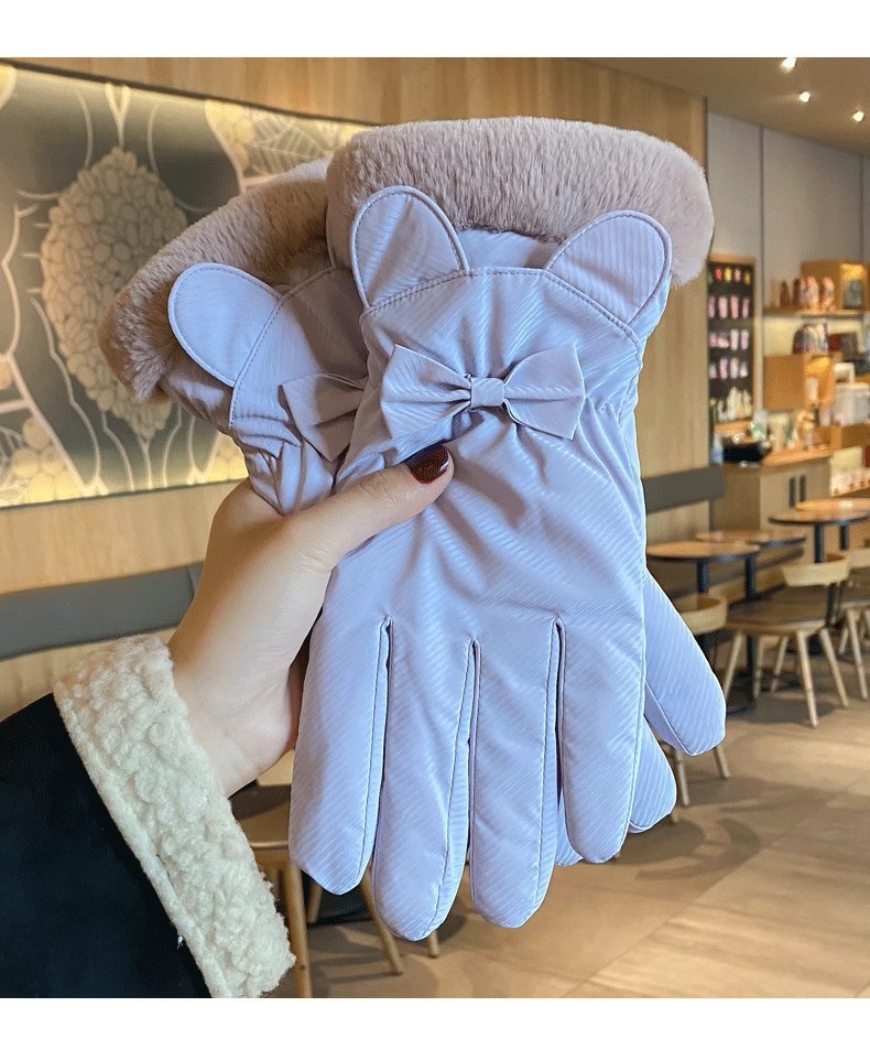 手套女士冬季加绒防寒加厚骑车触屏骑行滑雪可爱蝴蝶结毛绒棉手套