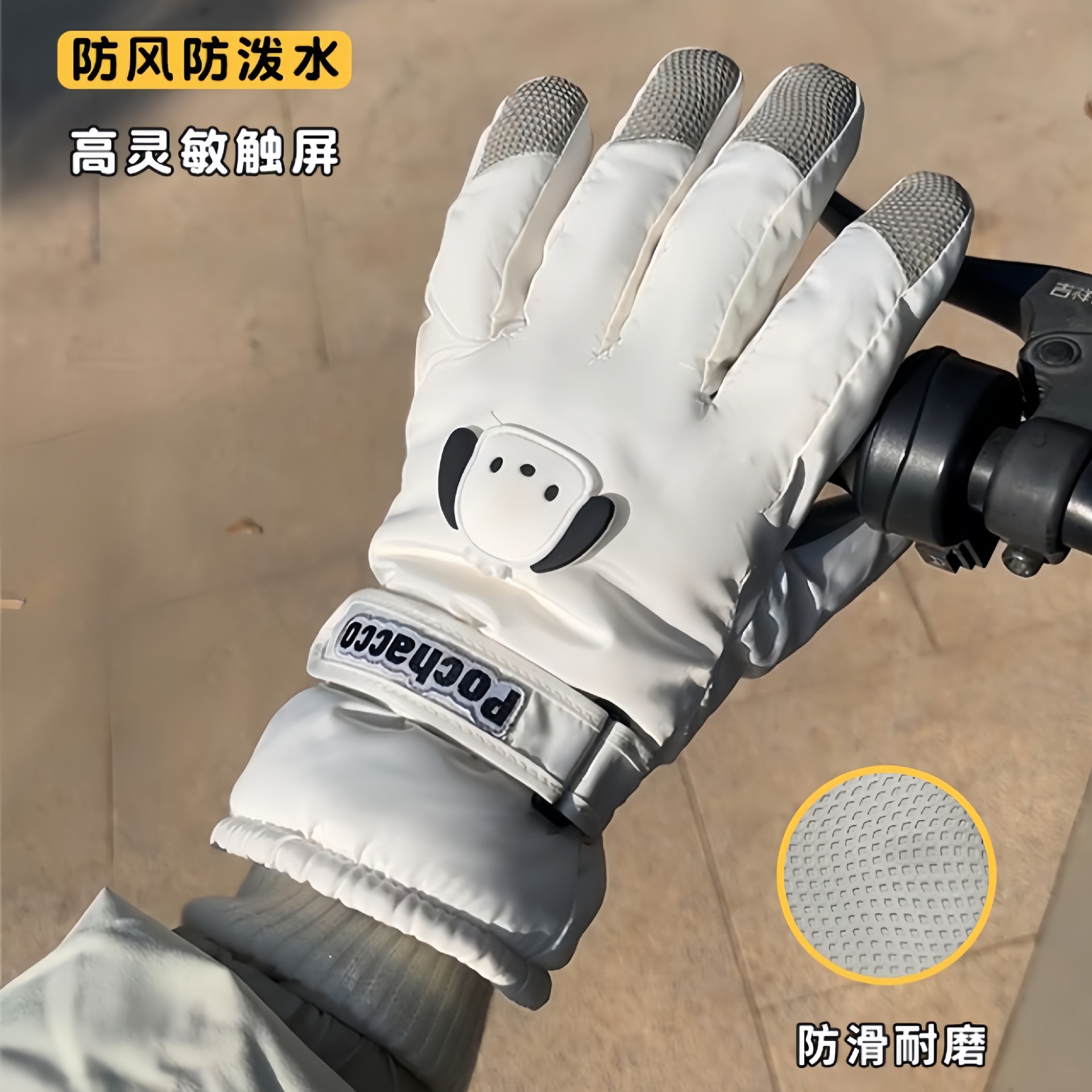 新款滑雪手套女士秋冬天加厚绒棉骑电车防风保暖正版卡通可爱触屏
