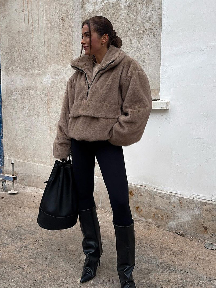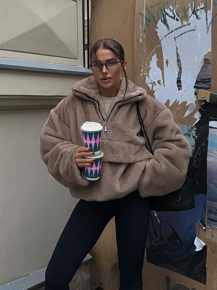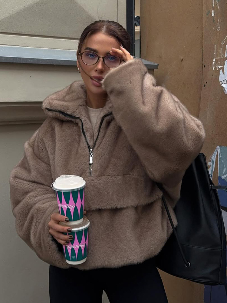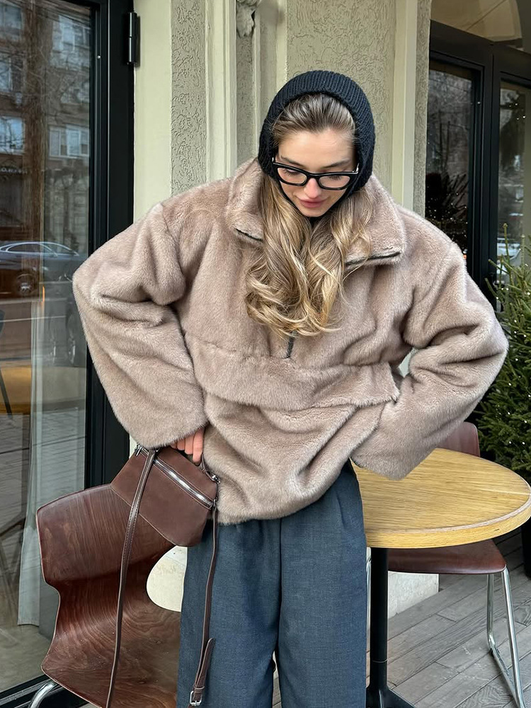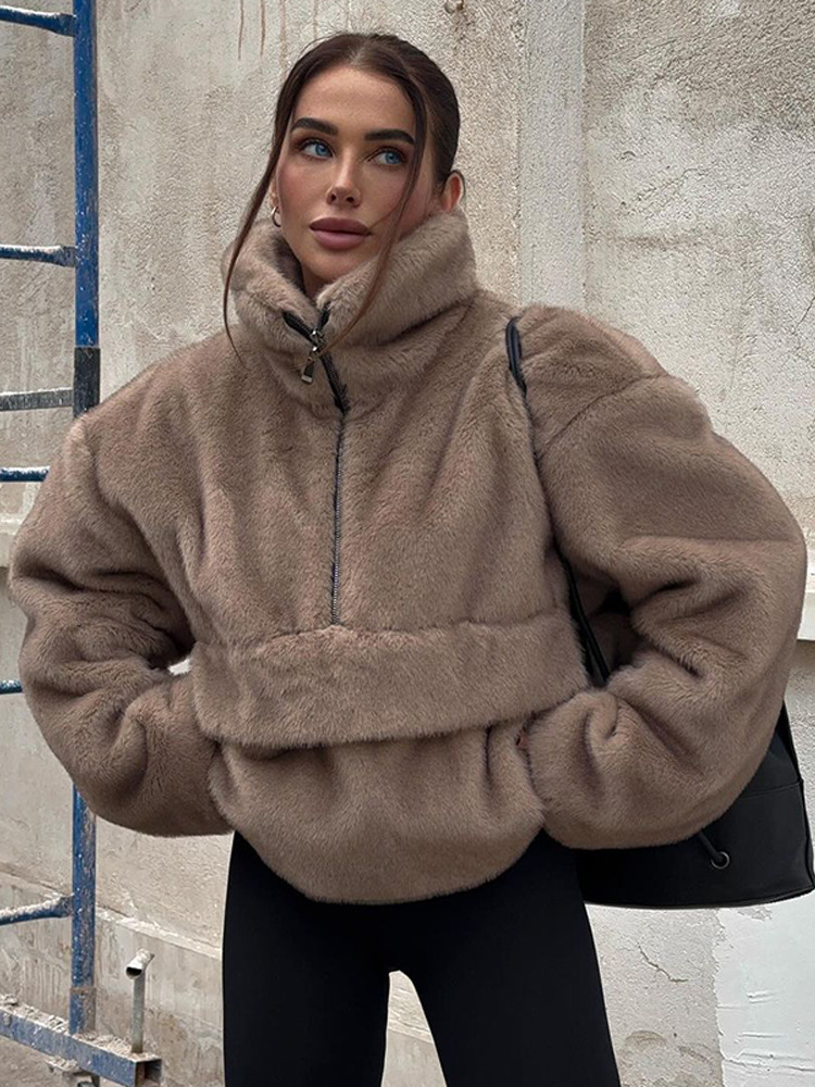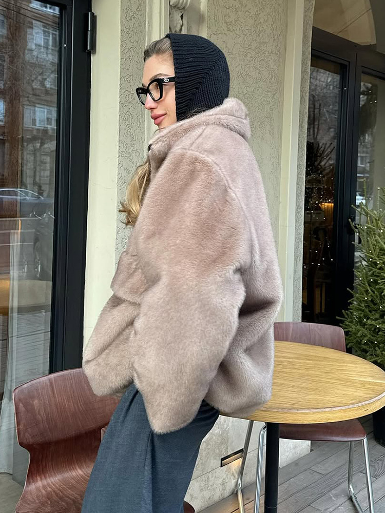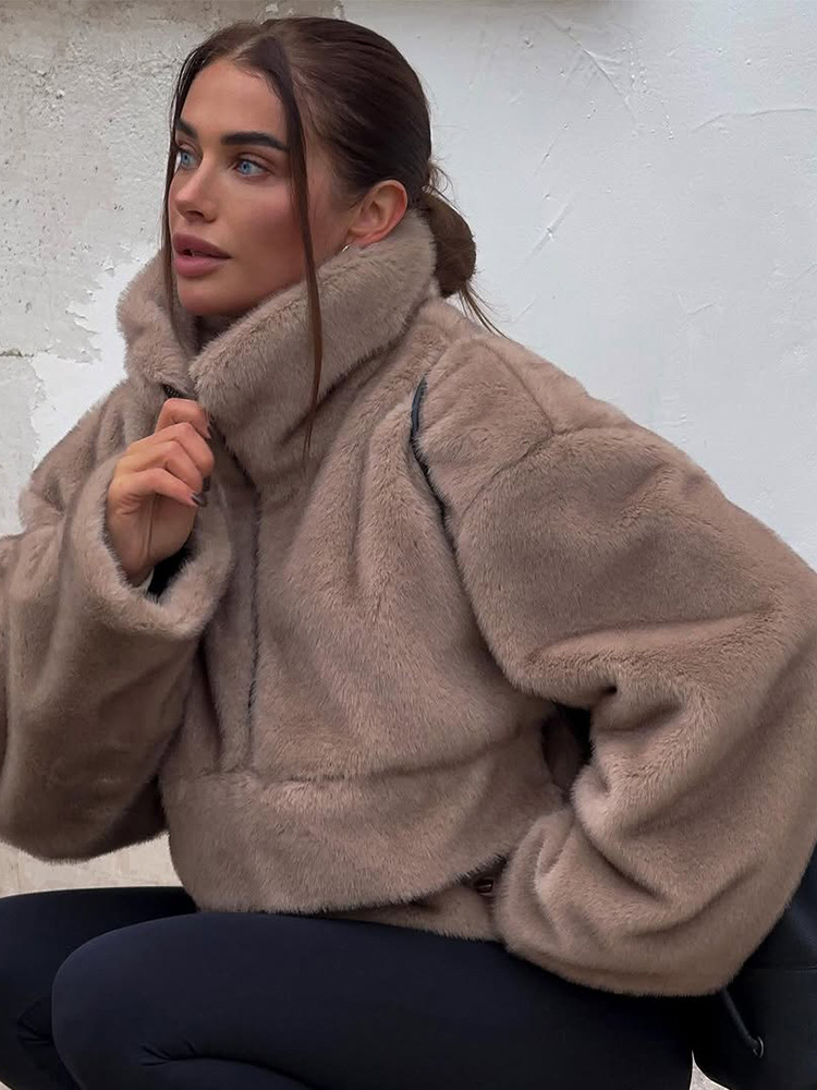 实拍-时尚气质加厚立领毛毛长袖皮草外套2025冬季新款跨境欧美风