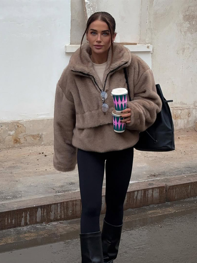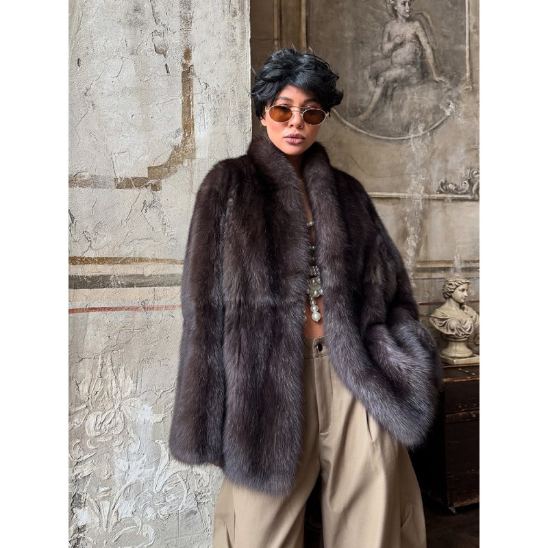 实拍-冬季新款时尚气质加厚立领毛毛长袖皮草外套2025跨境欧美风