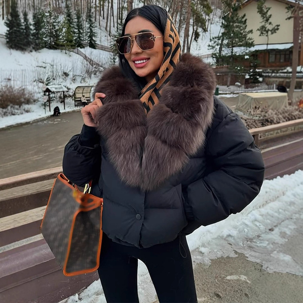 时尚高级感厚实保暖纯色毛领拼接棉服外套2025秋冬新款跨境欧美风