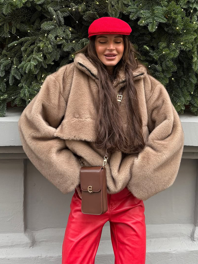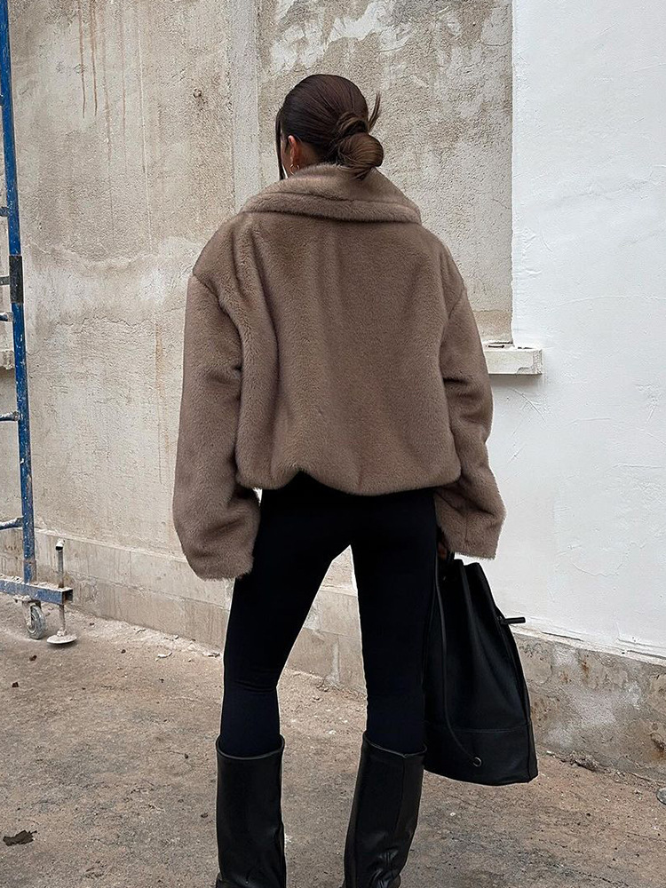 高级感时尚气质单排扣立领短款皮草外套2025秋冬新款跨境欧美风