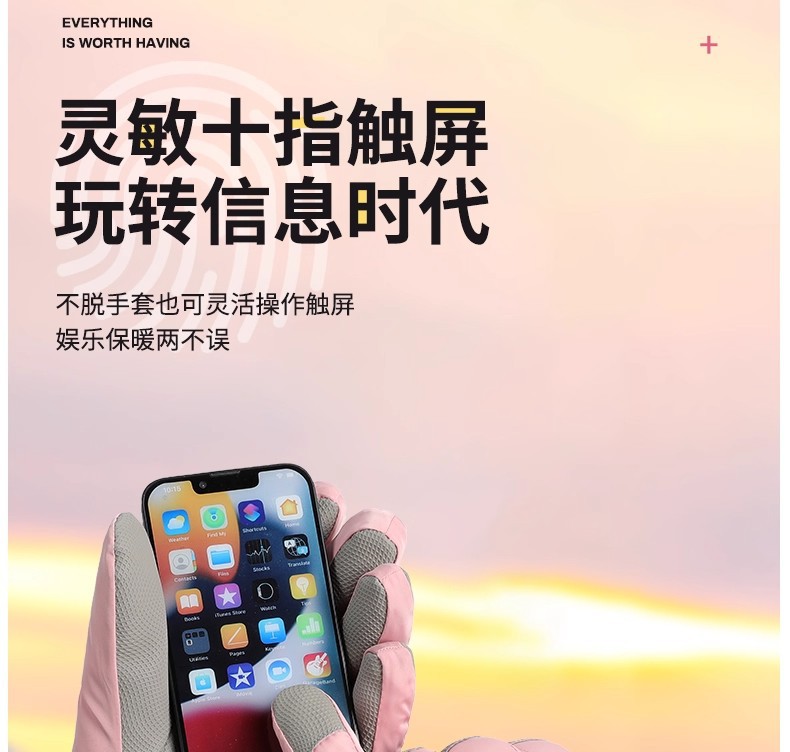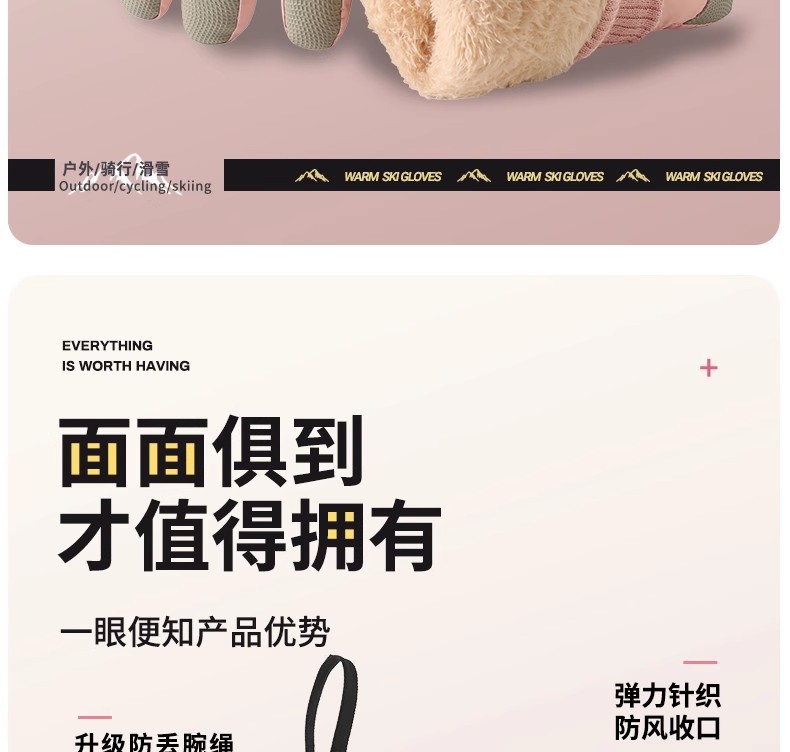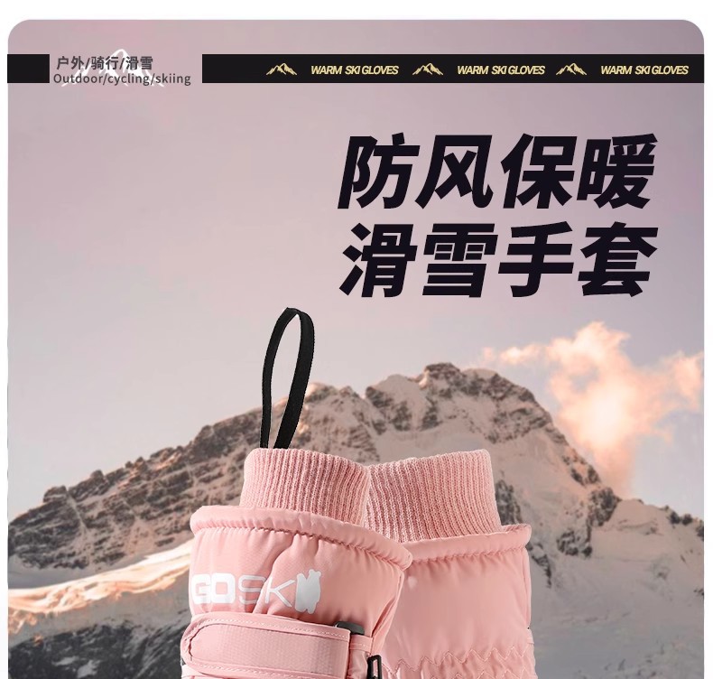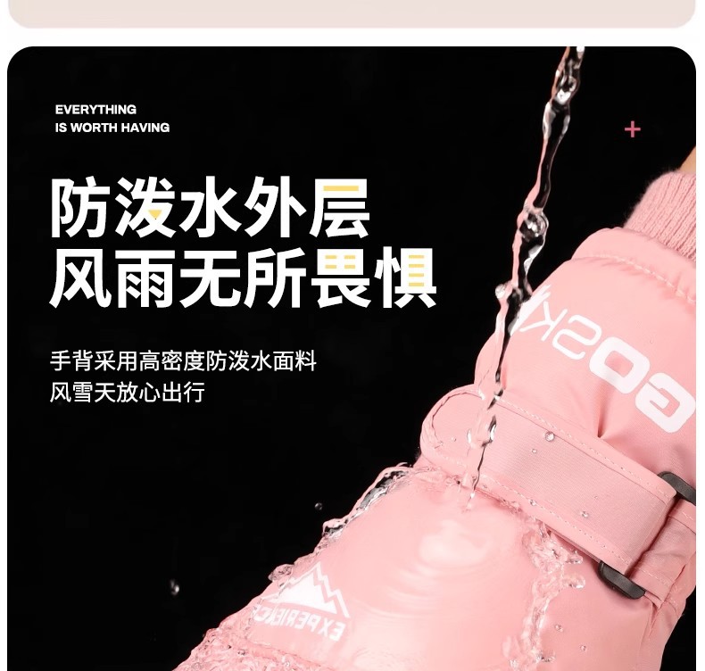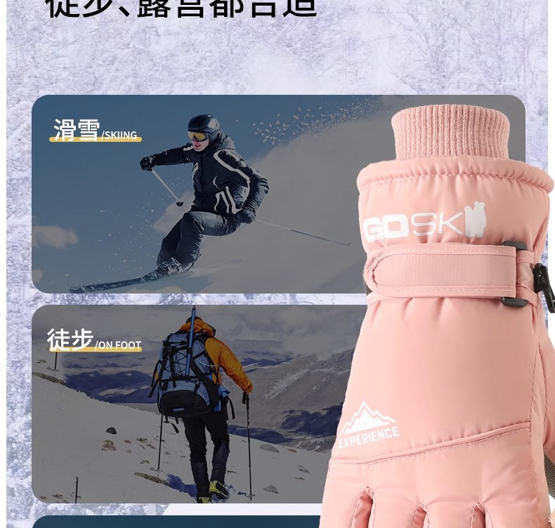 滑雪手套男女冬季保暖触屏羽绒棉情侣款加厚骑电车防寒风户外登山