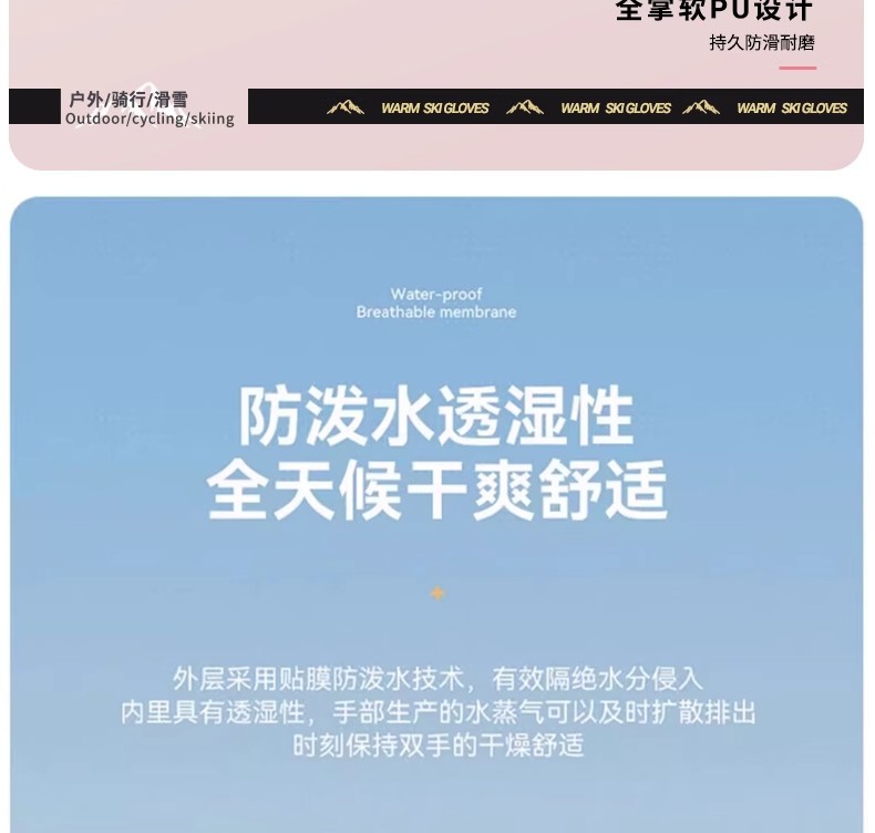 防风防水防寒秋冬保暖骑行加厚男冬季骑车可触屏电动车滑雪手套女