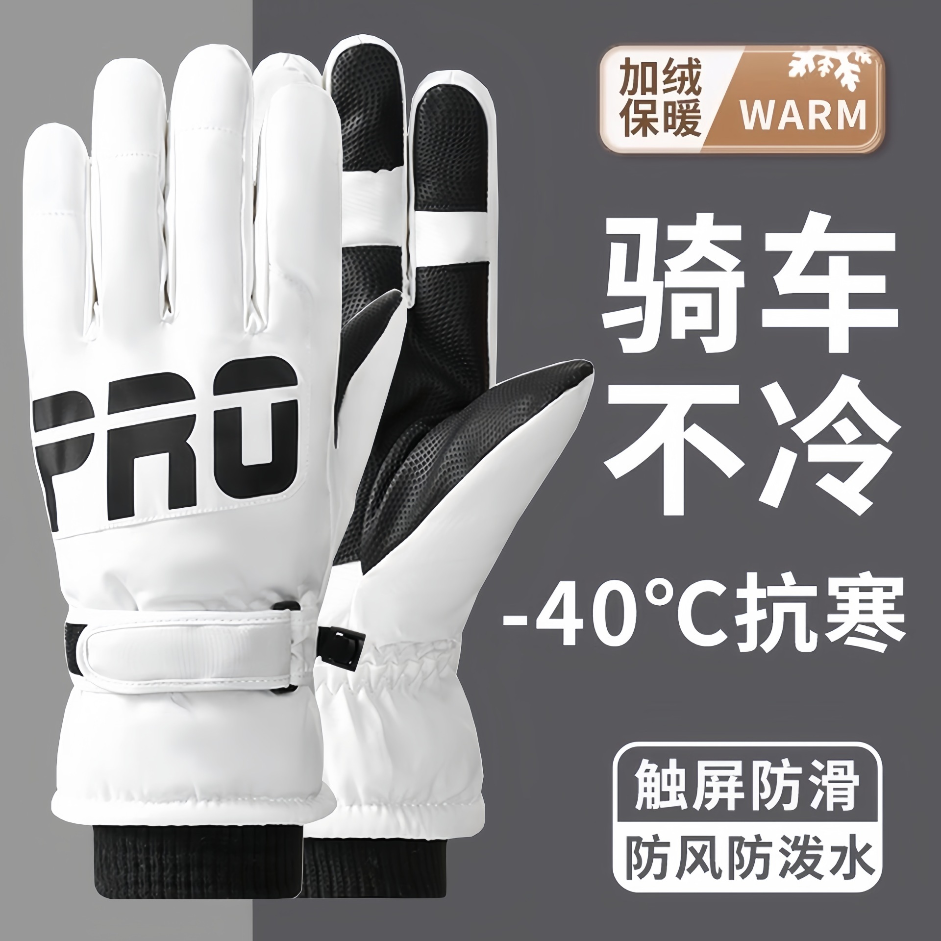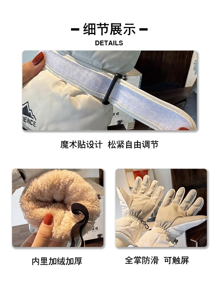 户外滑雪手套男女冬季加绒加厚触屏防风防水骑行电动车保暖棉手套
