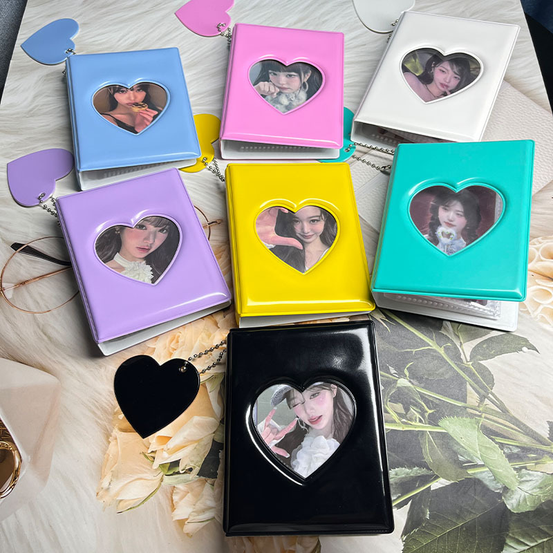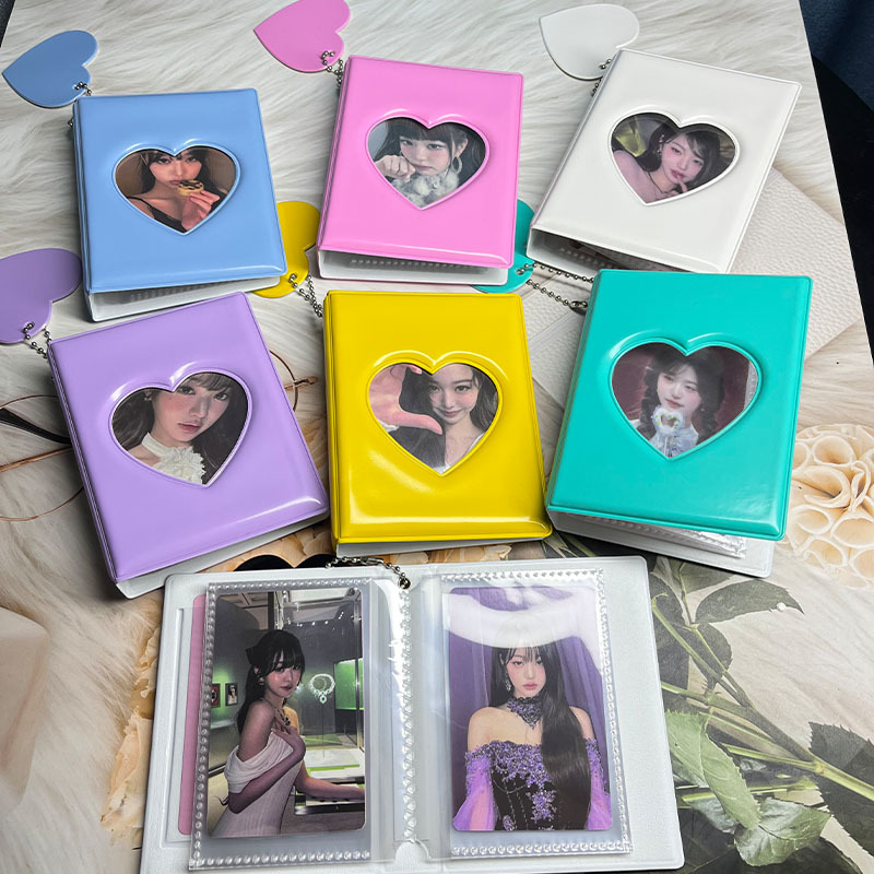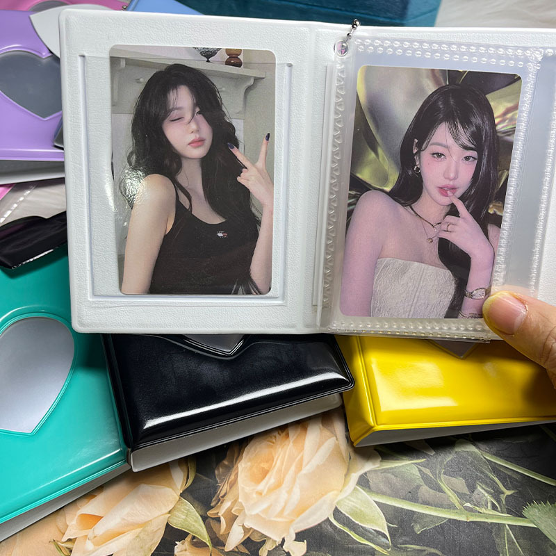 3inch ポラロイド写真アルバム、ハート型中空、芸能人追星、銀行カード、鉄道チケット、小型カードホルダー、収納カードスロットアップグレード