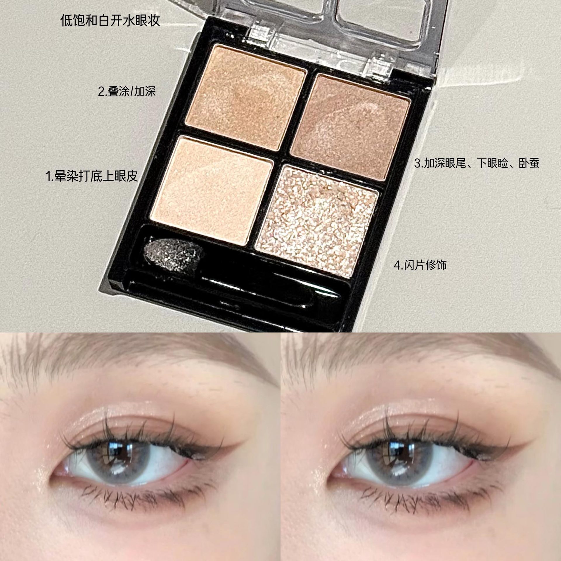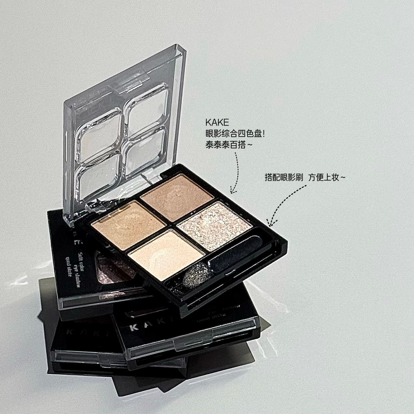 KAKE柔彩四色眼影盘自带眼影刷哑光珠光细闪高光提亮眼影跨境美妆