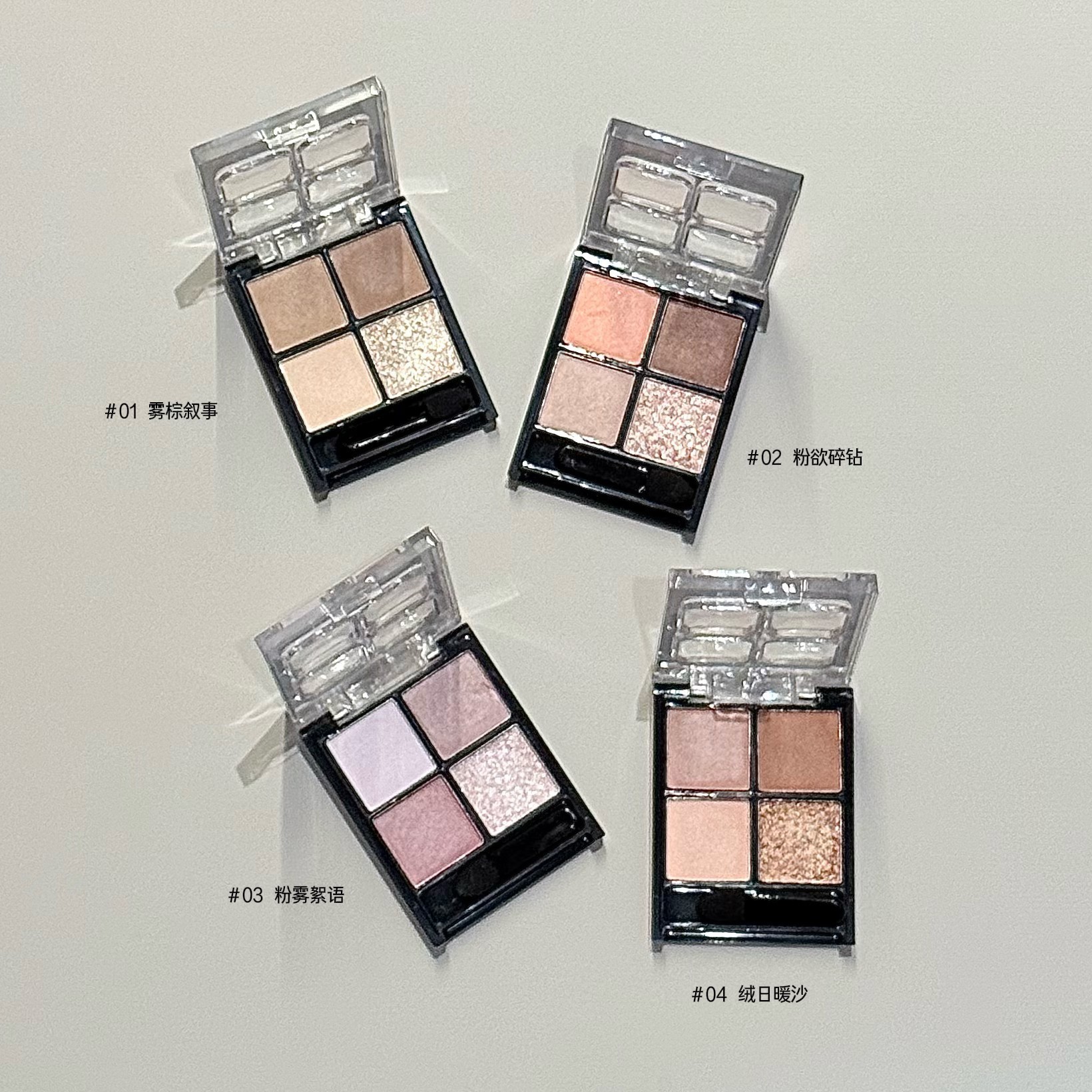 颜色分类 01#雾棕叙事,02#粉欲碎钻,03#粉雾絮语,04#绒日暖沙