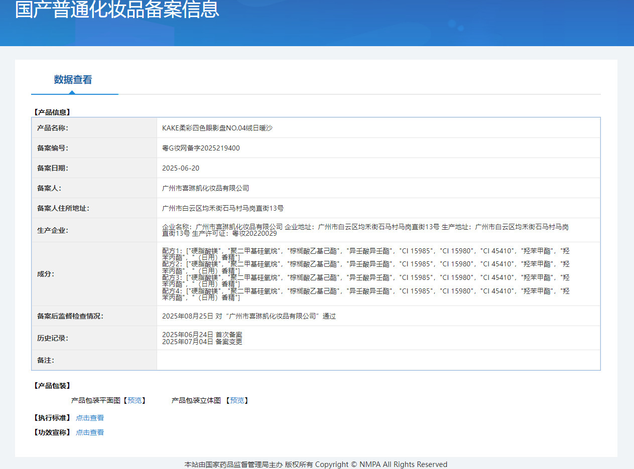 非特化妆品备案证号 粤G妆网备字2025140364