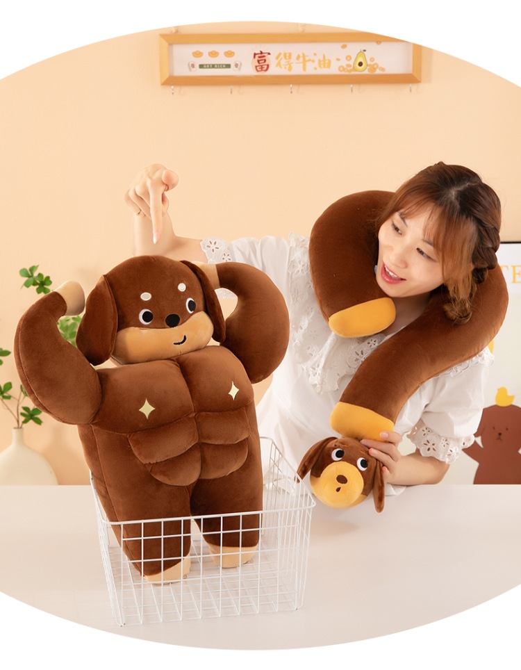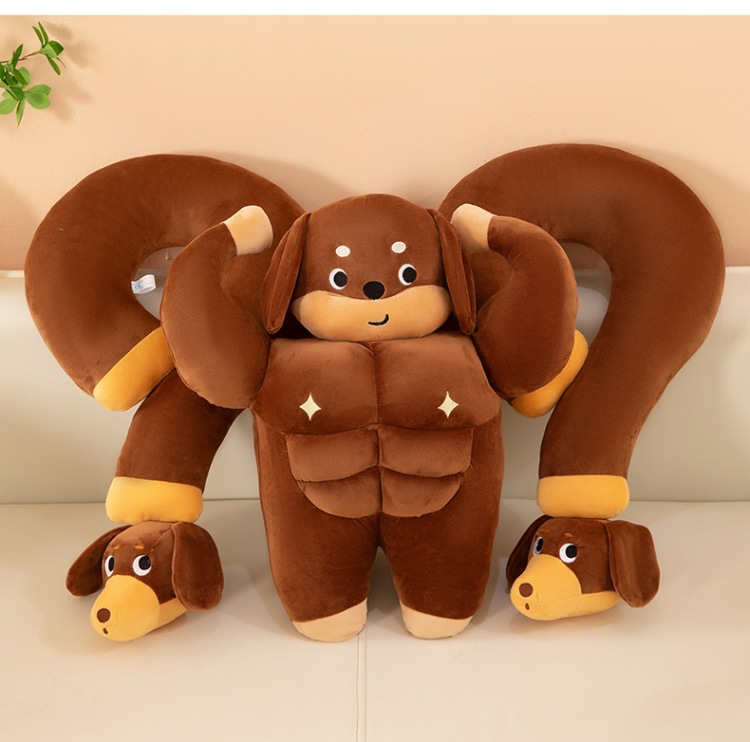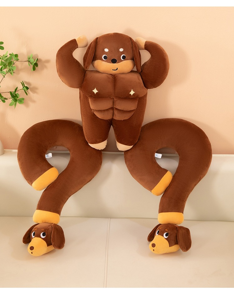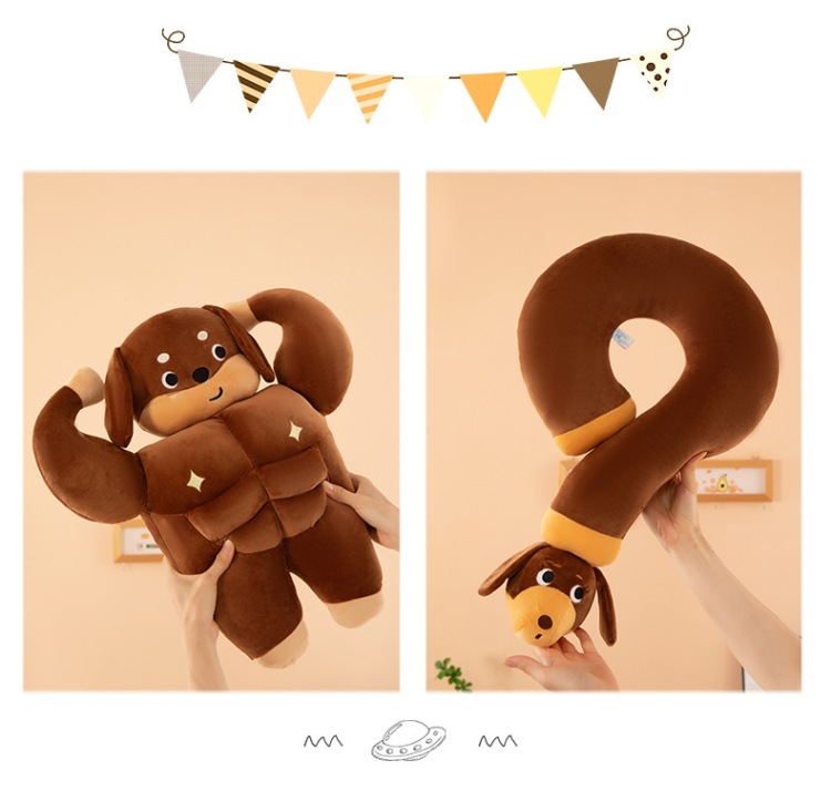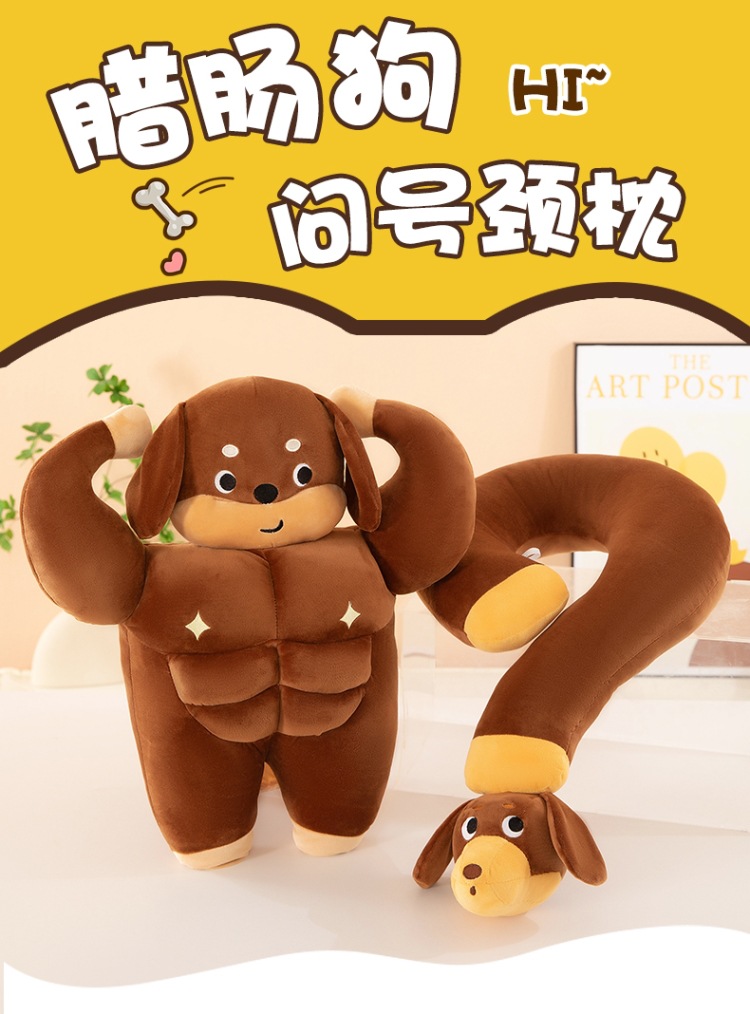 卡通肌肉腊肠狗毛绒玩具问号颈枕玩偶儿童睡觉安抚抱枕卡通布娃娃