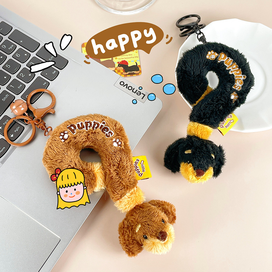 趣味创意可抽拉绳腊肠狗儿童解压玩具可爱问号小狗公仔玩偶钥匙扣