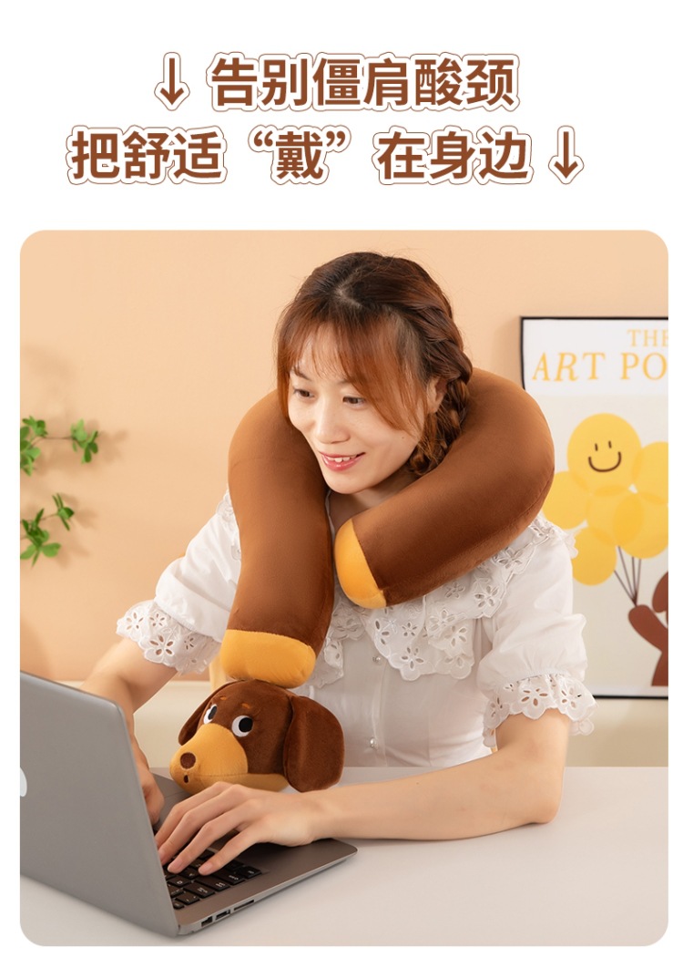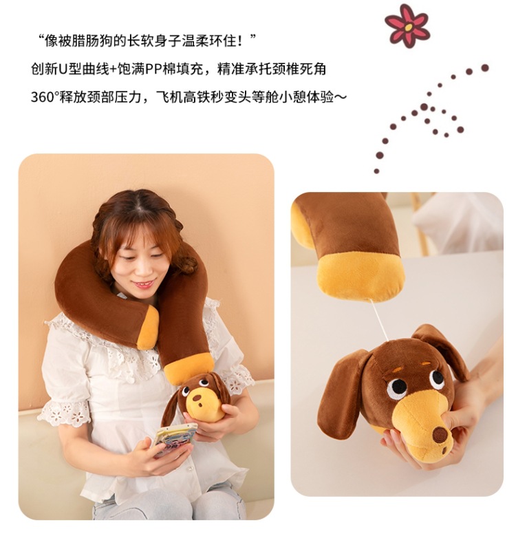 ソーセージ犬u形枕昼寝枕ぬいぐるみ旅行首枕学生寮かわいいぬいぐるみ女