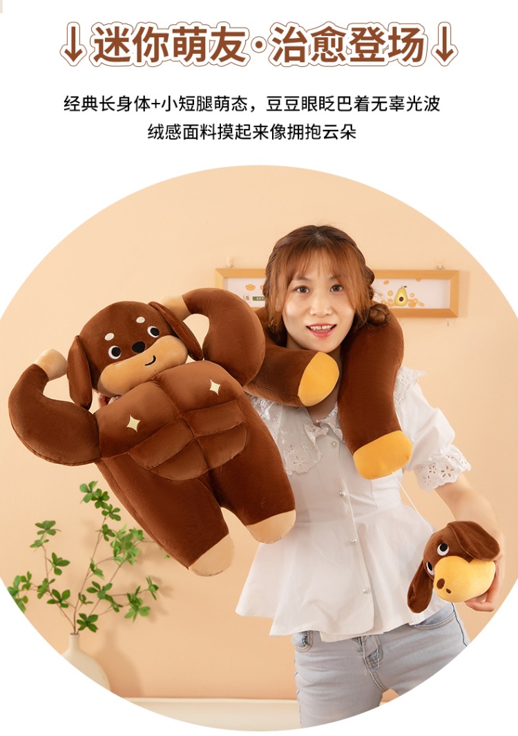 颜色 肌肉腊肠狗,腊肠狗颈枕-狗头可拉伸