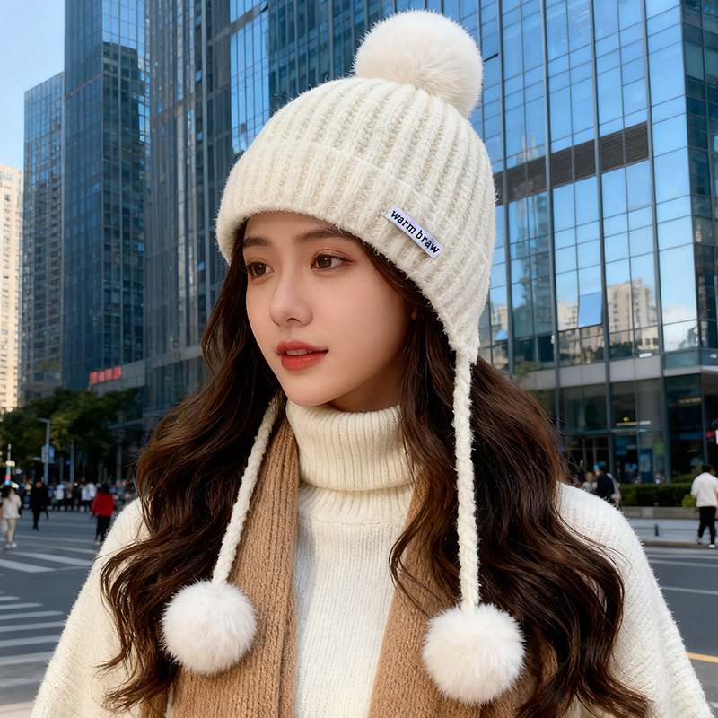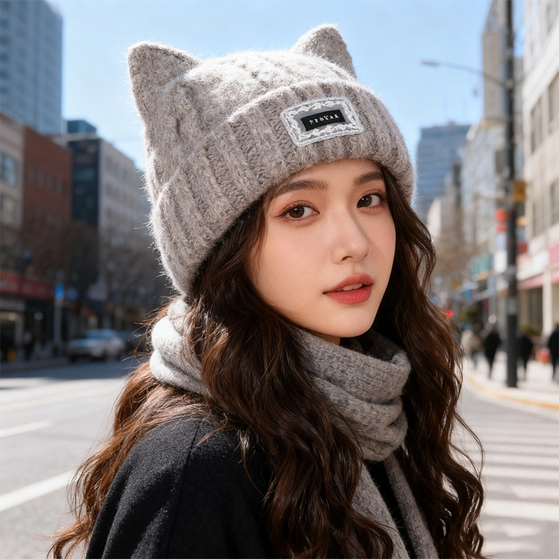 韩版猫耳朵针织帽子女冬季保暖护耳毛线帽显脸小包头帽百搭可爱潮