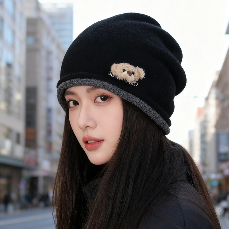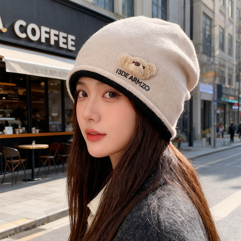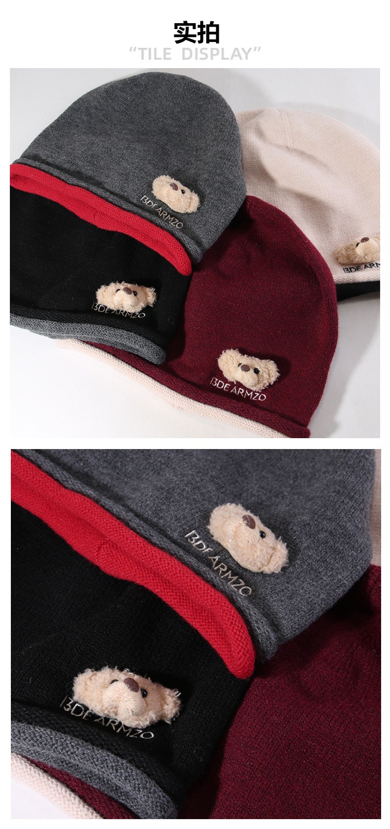 帽子秋冬可爱贴布小狗针织帽女保暖防寒包头冷帽显脸小护耳毛线帽