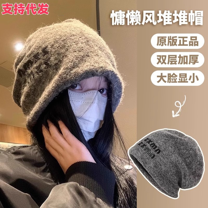 2025新款堆堆帽子女秋冬韩系宽松大头围冷帽显脸小可爱套头包头帽