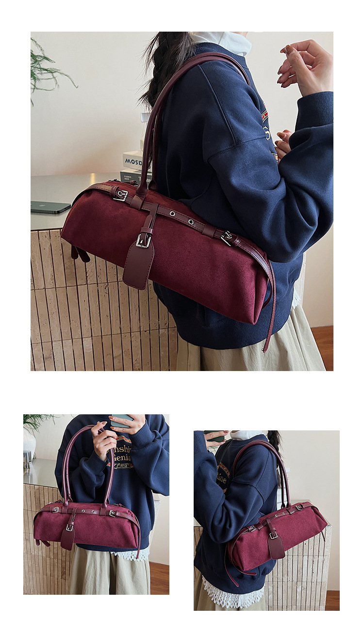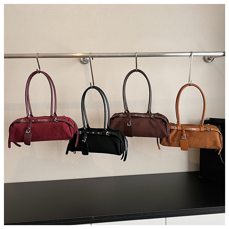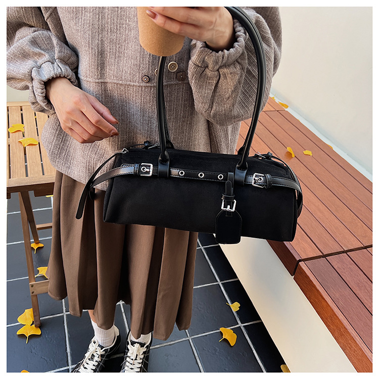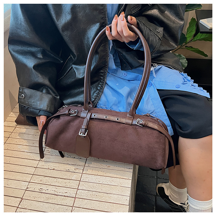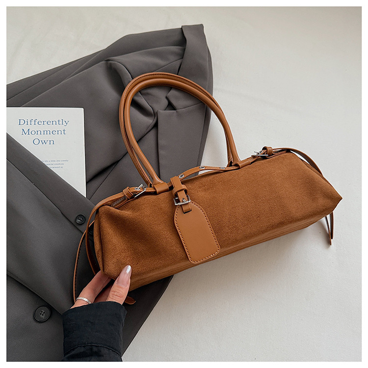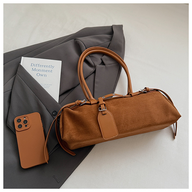 磨砂麂皮绒法棍包简约韩系保龄球包腋下时尚潮流单肩包小众手提包