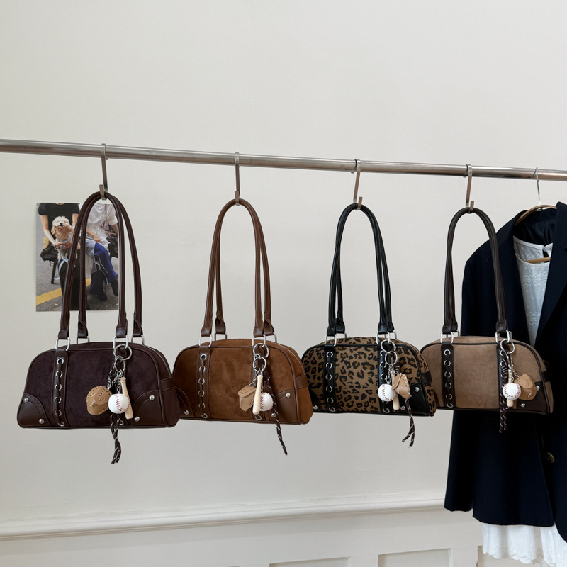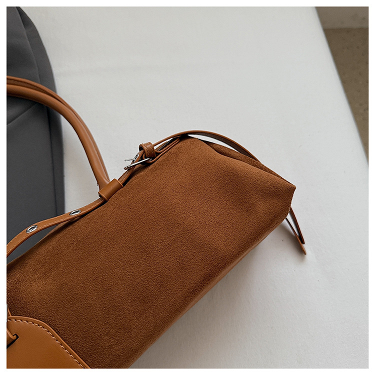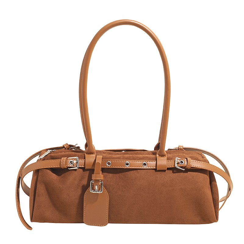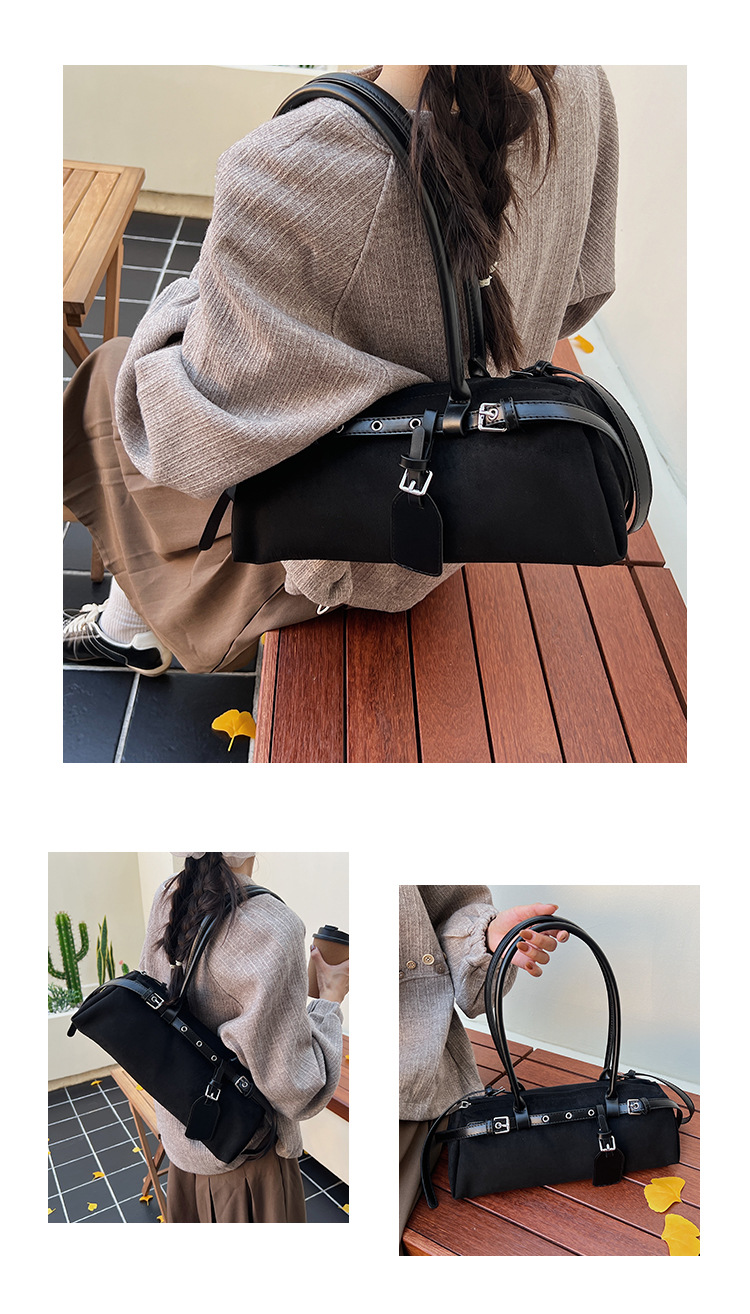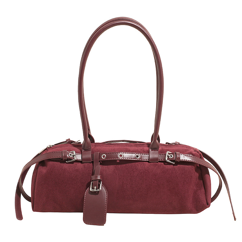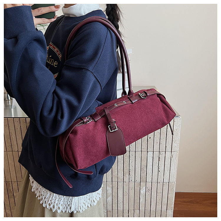 磨砂麂皮绒法棍包简约韩系保龄球包腋下时尚潮流单肩包小众手提包