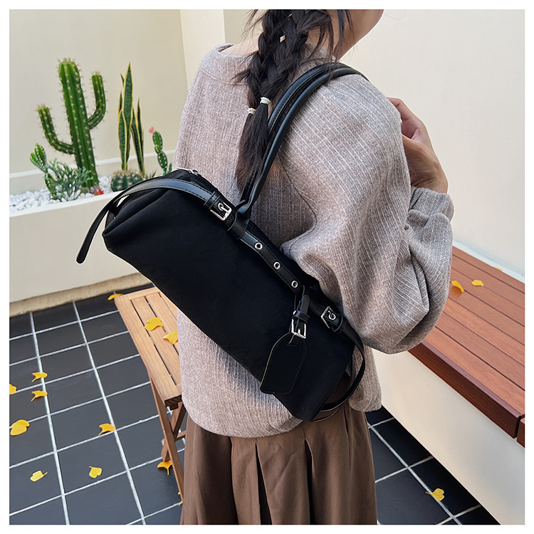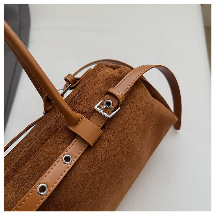 韩系ins麂皮绒枕头包大容量腋下包小众设计复古单肩包通勤饺子包