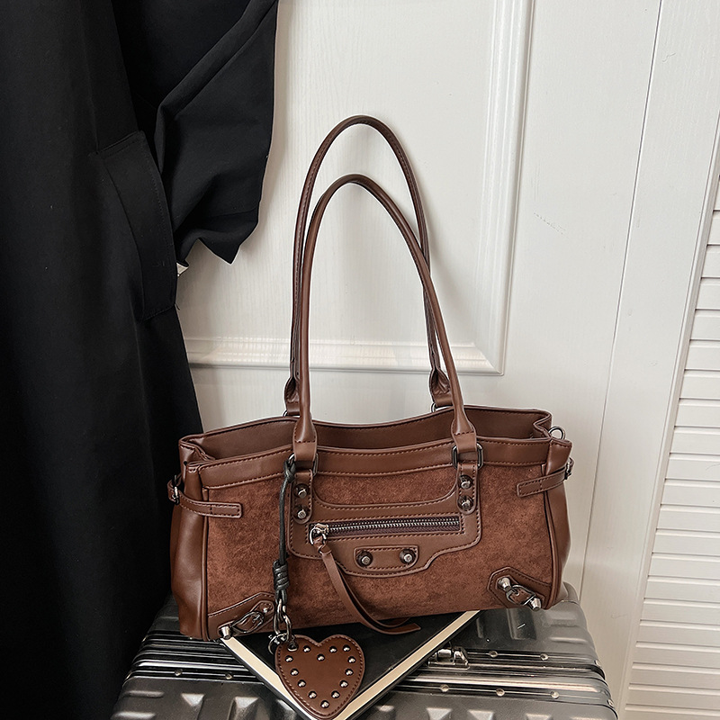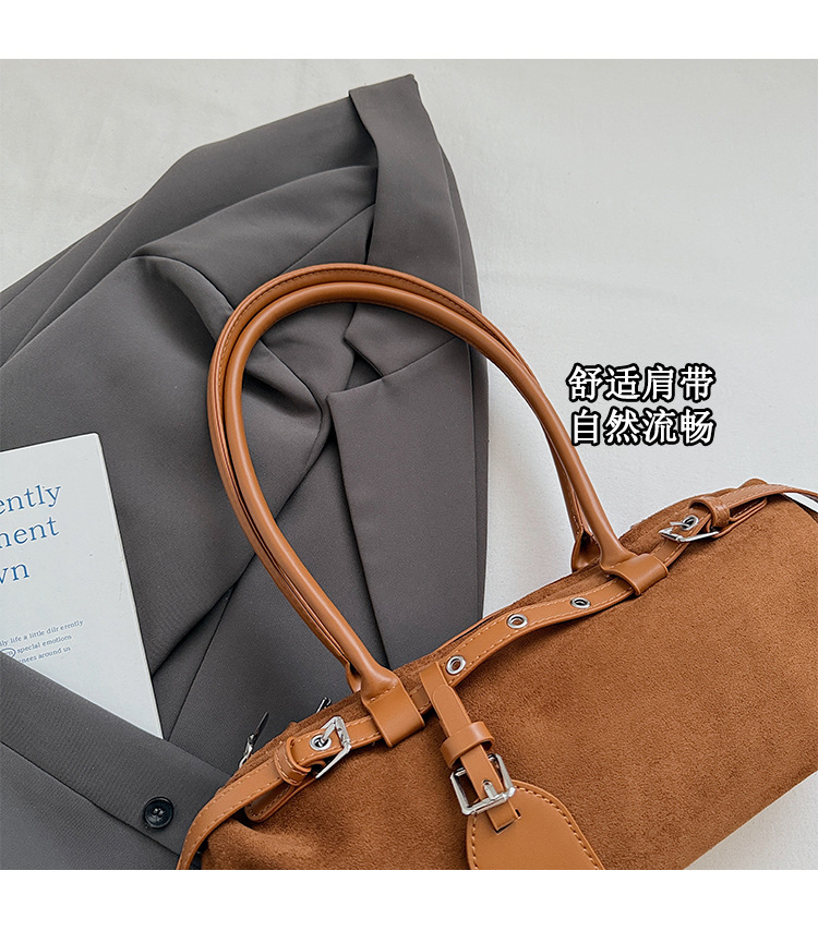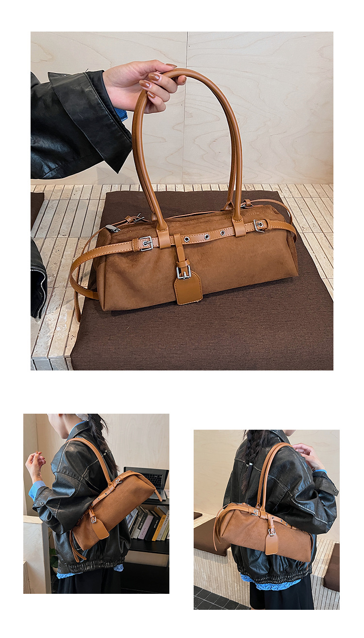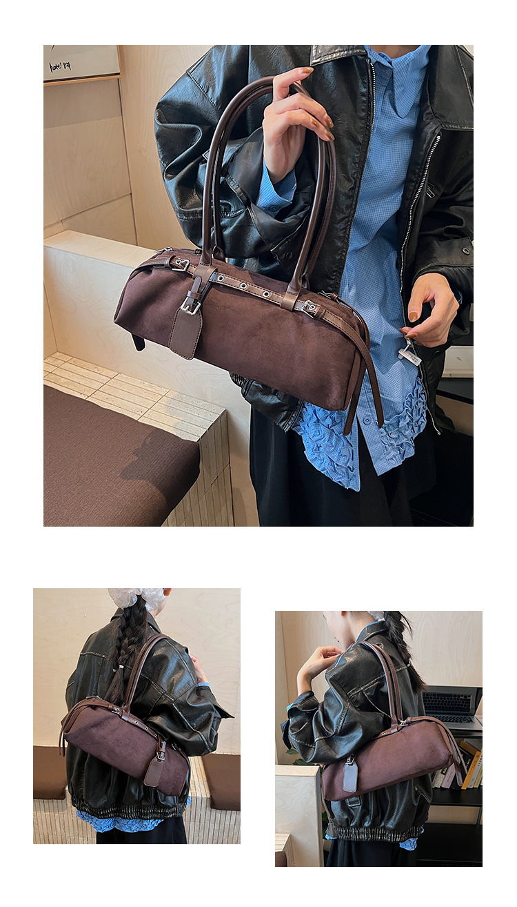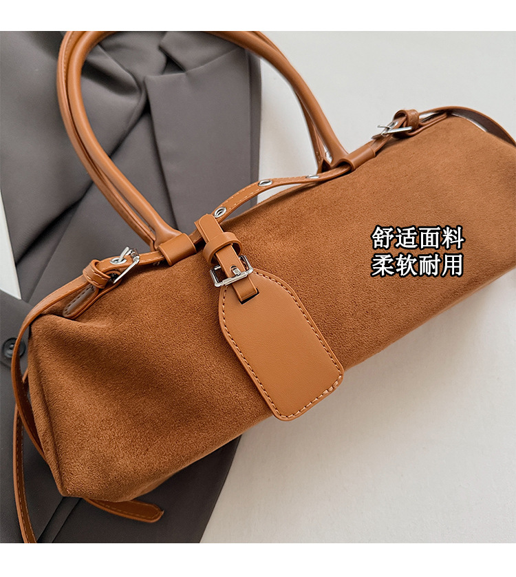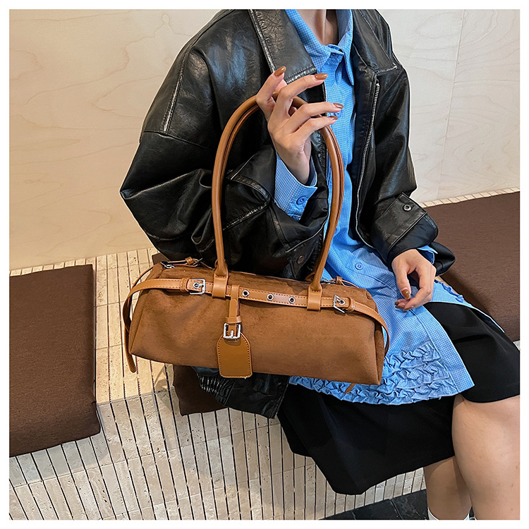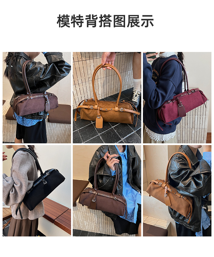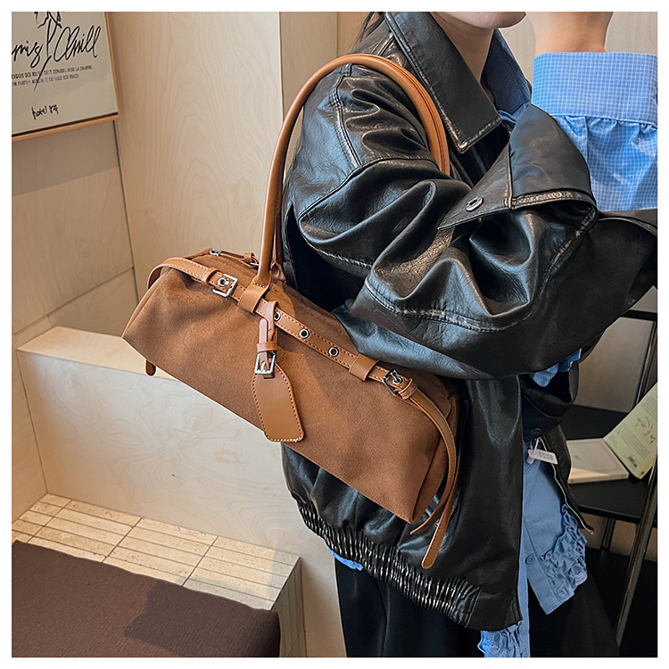 高级感潮流复古机车包麂皮绒通勤包磨砂包高级手提法棍腊肠腋下包